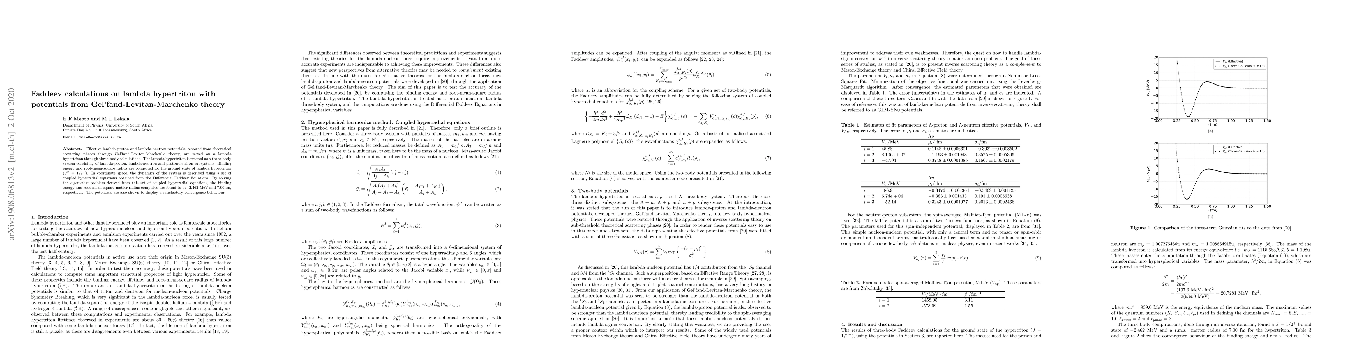 This paper uses Faddeev calculations to determine the binding energy and root-mean-square radius of the lambda hypertriton, employing effective lambda-proton and lambda-neutron potentials derived from the Gel'fand-Levitan-Marchenko theory. The results are -2.462 MeV for binding energy and 7.00 fm for the radius, demonstrating satisfactory convergence.