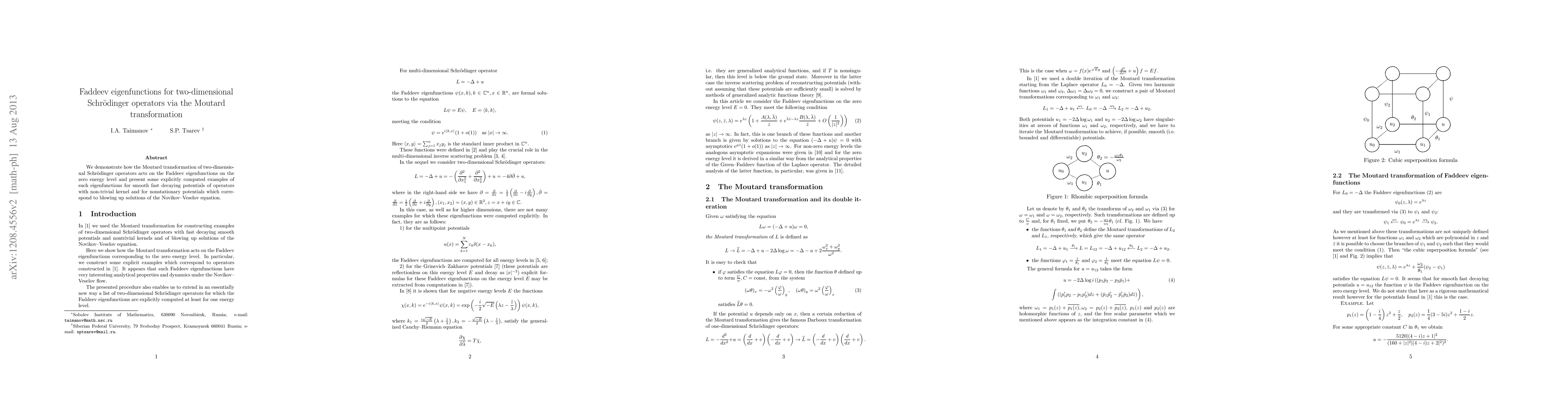 Summary: This paper explores the application of the Moutard transformation on two-dimensional Schrödinger operators and their Faddeev eigenfunctions at zero energy, providing explicit examples for smooth potentials and deformed potentials linked to the Novikov-Veselov equation.