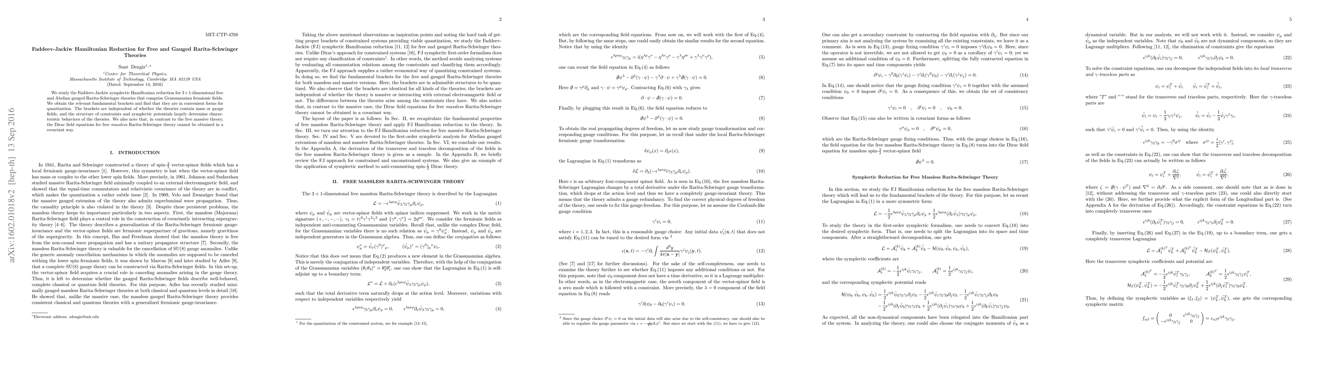 This paper explores the Faddeev-Jackiw Hamiltonian reduction for free and Abelian gauged Rarita-Schwinger theories, revealing fundamental brackets suitable for quantization. It highlights that the structure of constraints and symplectic potentials governs the theories' behaviors, noting a non-covariant derivation for massless Rarita-Schwinger fields.