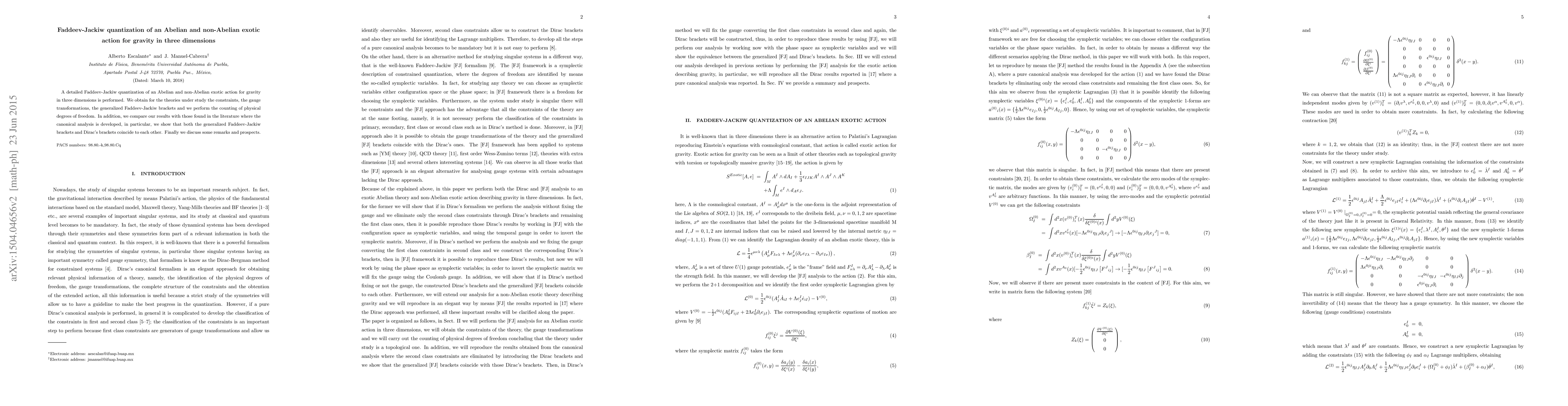This paper details the Faddeev-Jackiw quantization of exotic Abelian and non-Abelian gravity actions in three dimensions, deriving constraints, gauge transformations, and generalized brackets, and comparing results with canonical analyses. The study concludes that the generalized Faddeev-Jackiw brackets align with Dirac's brackets.