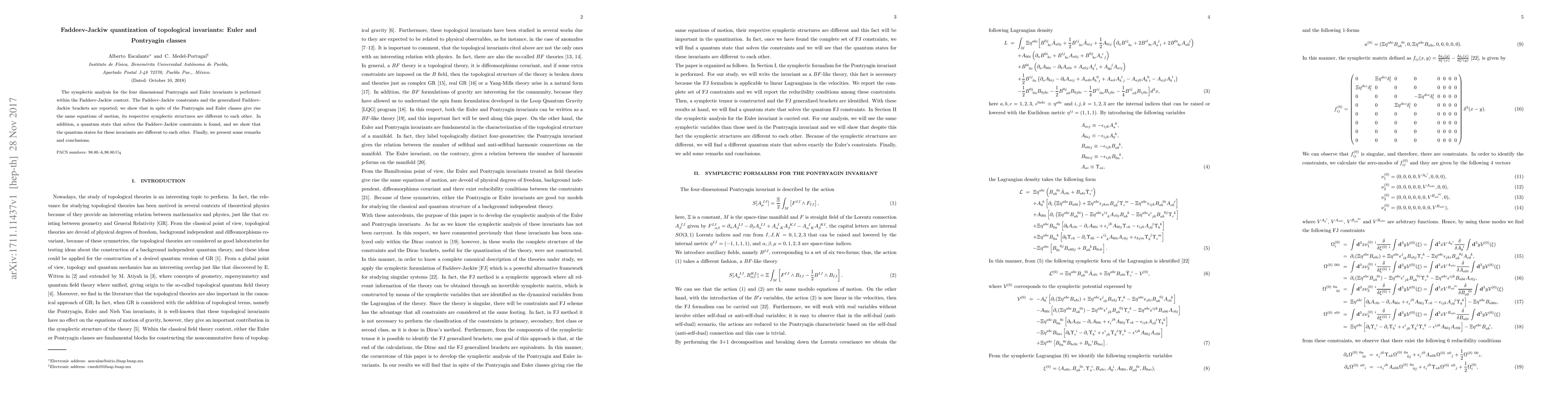 This paper quantizes the four-dimensional Pontryagin and Euler invariants using the Faddeev-Jackiw method, revealing distinct symplectic structures despite identical equations of motion. It also identifies different quantum states for these invariants and concludes with remarks on their implications.