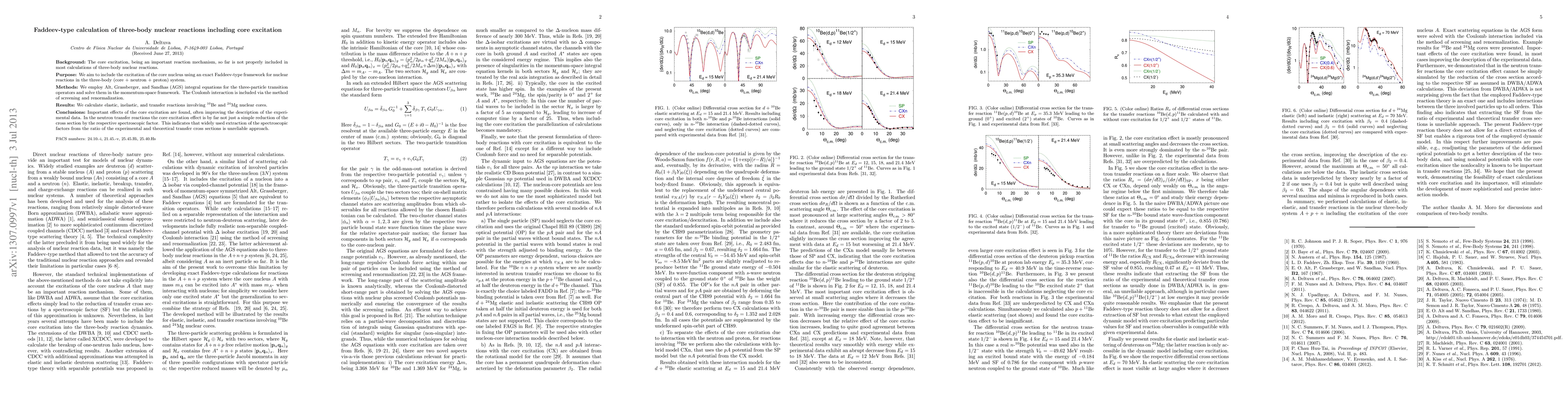 This paper presents a comprehensive Faddeev-type calculation incorporating core excitation in three-body nuclear reactions, using AGS integral equations and screening methods. The study finds significant effects of core excitation, particularly in neutron transfer reactions, challenging the reliability of current spectroscopic factor extraction methods.