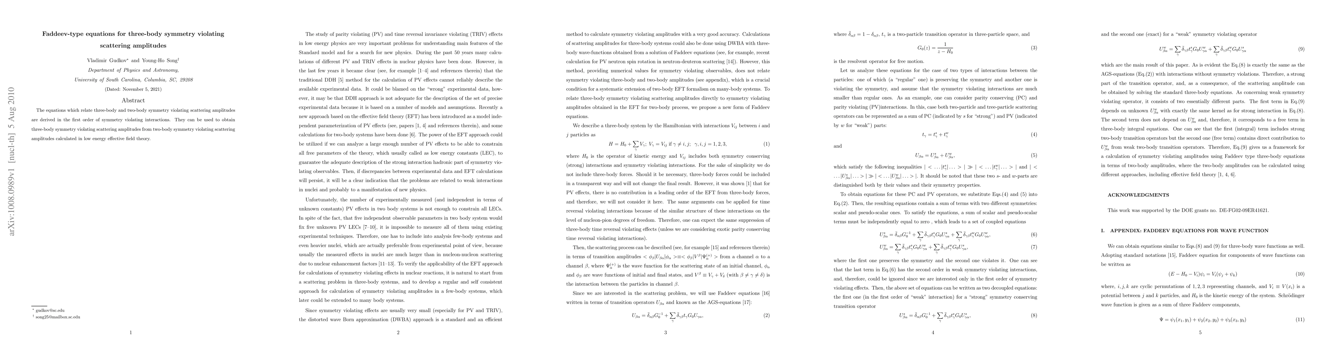 Summary: This paper derives Faddeev-type equations for three-body scattering amplitudes that account for symmetry violations, using low energy effective field theory to relate them to two-body amplitudes. The equations facilitate the calculation of three-body effects from known two-body interactions.