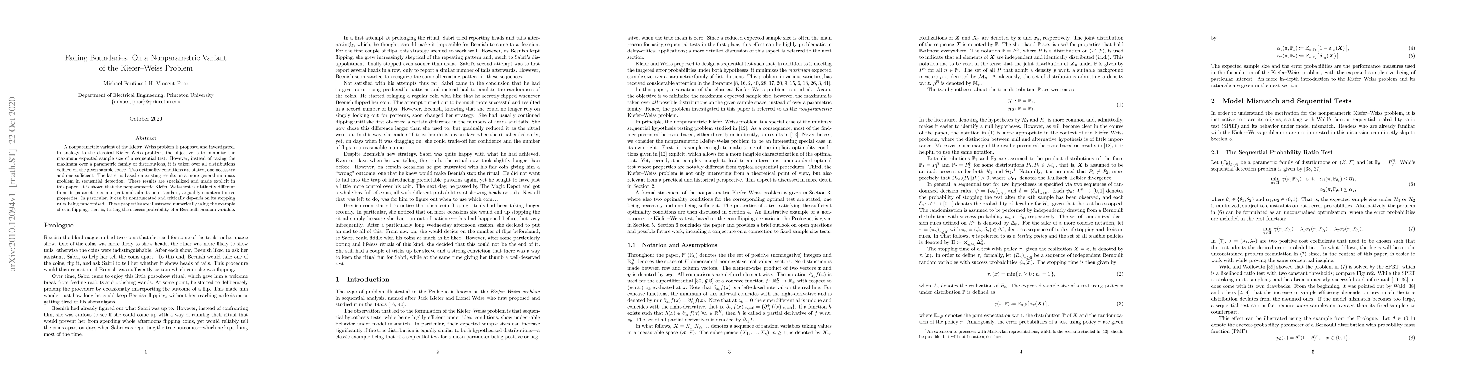 Researchers propose a nonparametric variant of the Kiefer-Weiss problem to minimize the maximum expected sample size of sequential tests, revealing distinct properties that differ from its parametric counterpart.