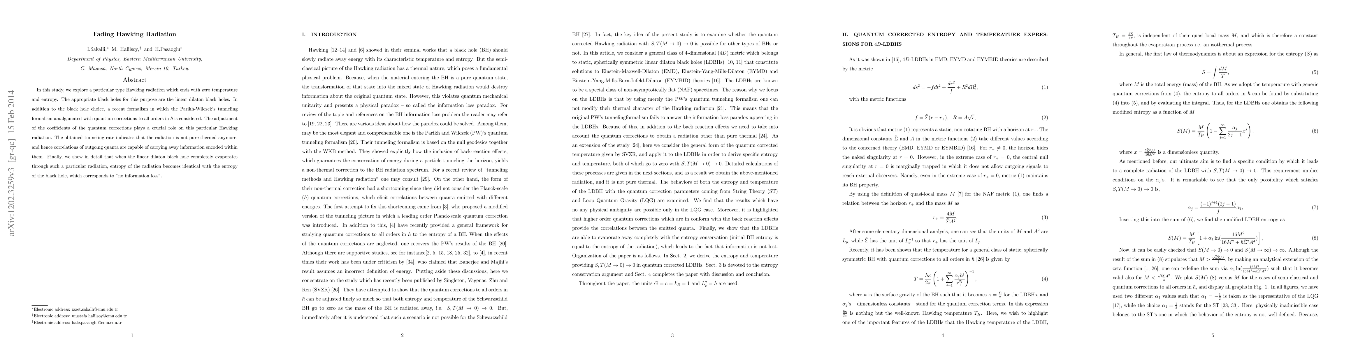 In this study, we explore a particular type Hawking radiation which ends with zero temperature and entropy. The appropriate black holes for this purpose are the linear dilaton black holes. In addition to the black hole choice, a recent formalism in which the Parikh-Wilczek's tunneling formalism amalgamated with quantum corrections to all orders in \hbar is considered. The adjustment of the coefficients of the quantum corrections plays a crucial role on this particular Hawking radiation. The obtained tunneling rate indicates that the radiation is not pure thermal anymore, and hence correlations of outgoing quanta are capable of carrying away information encoded within them. Finally, we show in detail that when the linear dilaton black hole completely evaporates through such a particular radiation, entropy of the radiation becomes identical with the entropy of the black hole, which corresponds to "no information loss".