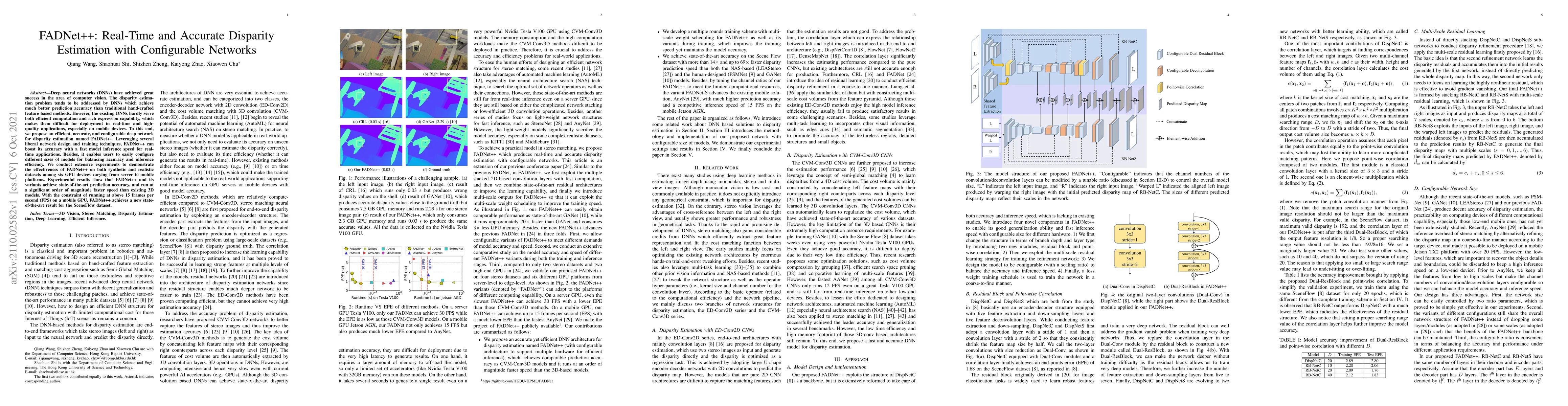 Deep neural networks (DNNs) have achieved great success in the area of computer vision. The disparity estimation problem tends to be addressed by DNNs which achieve much better prediction accuracy than traditional hand-crafted feature-based methods. However, the existing DNNs hardly serve both efficient computation and rich expression capability, which makes them difficult for deployment in real-time and high-quality applications, especially on mobile devices. To this end, we propose an efficient, accurate, and configurable deep network for disparity estimation named FADNet++. Leveraging several liberal network design and training techniques, FADNet++ can boost its accuracy with a fast model inference speed for real-time applications. Besides, it enables users to easily configure different sizes of models for balancing accuracy and inference efficiency. We conduct extensive experiments to demonstrate the effectiveness of FADNet++ on both synthetic and realistic datasets among six GPU devices varying from server to mobile platforms. Experimental results show that FADNet++ and its variants achieve state-of-the-art prediction accuracy, and run at a significant order of magnitude faster speed than existing 3D models. With the constraint of running at above 15 frames per second (FPS) on a mobile GPU, FADNet++ achieves a new state-of-the-art result for the SceneFlow dataset.
