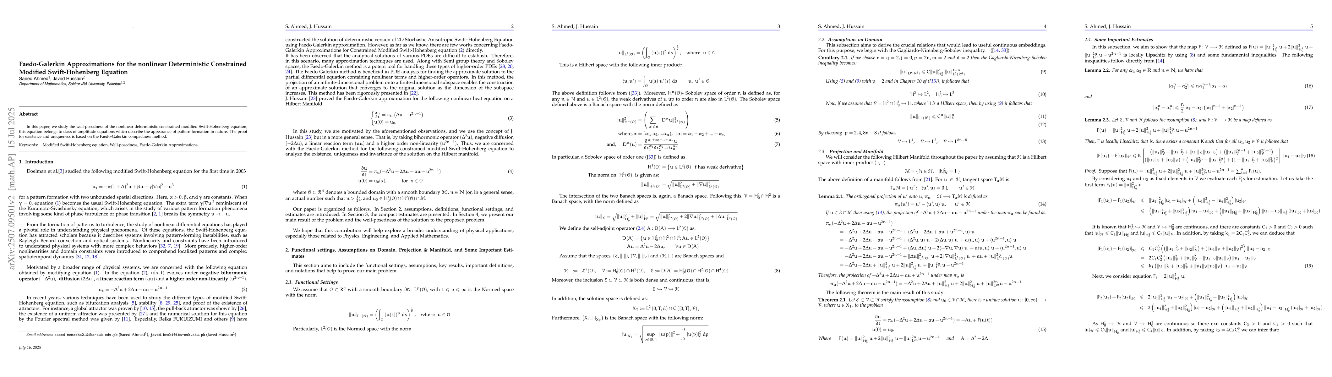 In this paper, we study the well-posedness of the nonlinear deterministic constrained modified Swift-Hohenberg equation; this equation belongs to class of amplitude equations which describe the appearance of pattern formation in nature. The proof for existence and uniqueness is based on the Faedo-Galerkin compactness method.