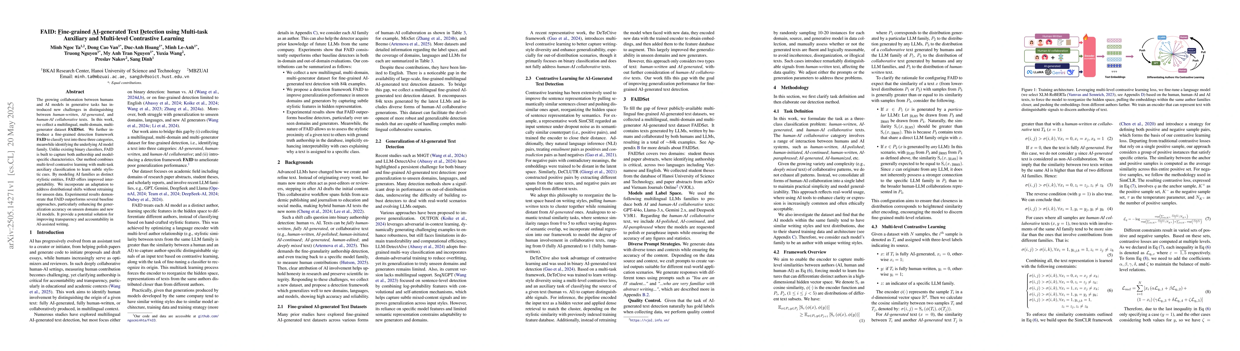 FAID outperforms baseline approaches, particularly on unseen domains and new AI models, providing a potential solution for improving transparency and accountability in AI-assisted writing.