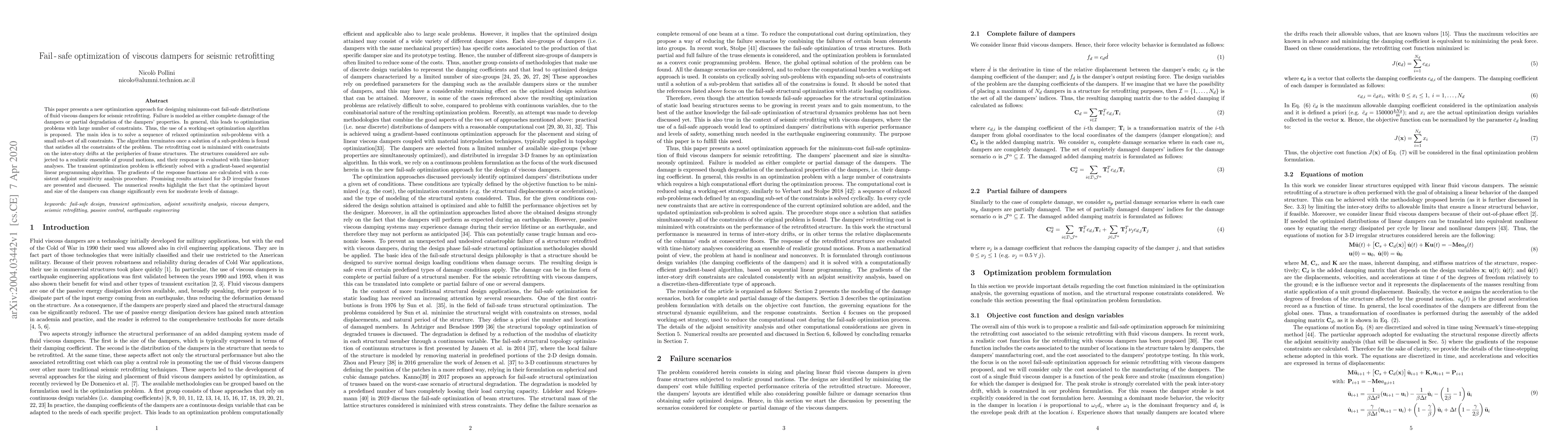 This paper introduces an optimization method for cost-effective, fail-safe viscous dampers in seismic retrofitting, employing a working-set algorithm to manage complex constraints. The approach minimizes retrofitting costs while ensuring structural stability under various ground motions.