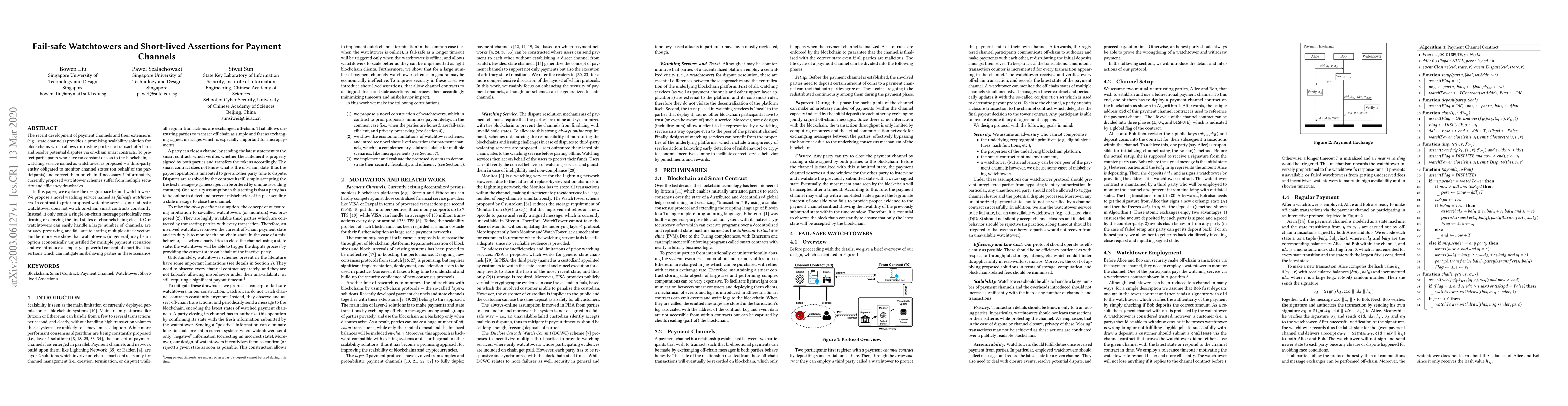 The recent development of payment channels and their extensions (e.g., state channels) provides a promising scalability solution for blockchains which allows untrusting parties to transact off-chain and resolve potential disputes via on-chain smart contracts. To protect participants who have no constant access to the blockchain, a watching service named as watchtower is proposed -- a third-party entity obligated to monitor channel states (on behalf of the participants) and correct them on-chain if necessary. Unfortunately, currently proposed watchtower schemes suffer from multiple security and efficiency drawbacks. In this paper, we explore the design space behind watchtowers. We propose a novel watching service named as fail-safe watchtowers. In contrast to prior proposed watching services, our fail-safe watchtower does not watch on-chain smart contracts constantly. Instead, it only sends a single on-chain message periodically confirming or denying the final states of channels being closed. Our watchtowers can easily handle a large number of channels, are privacy-preserving, and fail-safe tolerating multiple attack vectors. Furthermore, we show that watchtowers (in general) may be an option economically unjustified for multiple payment scenarios and we introduce a simple, yet powerful concept of short-lived assertions which can mitigate misbehaving parties in these scenarios.