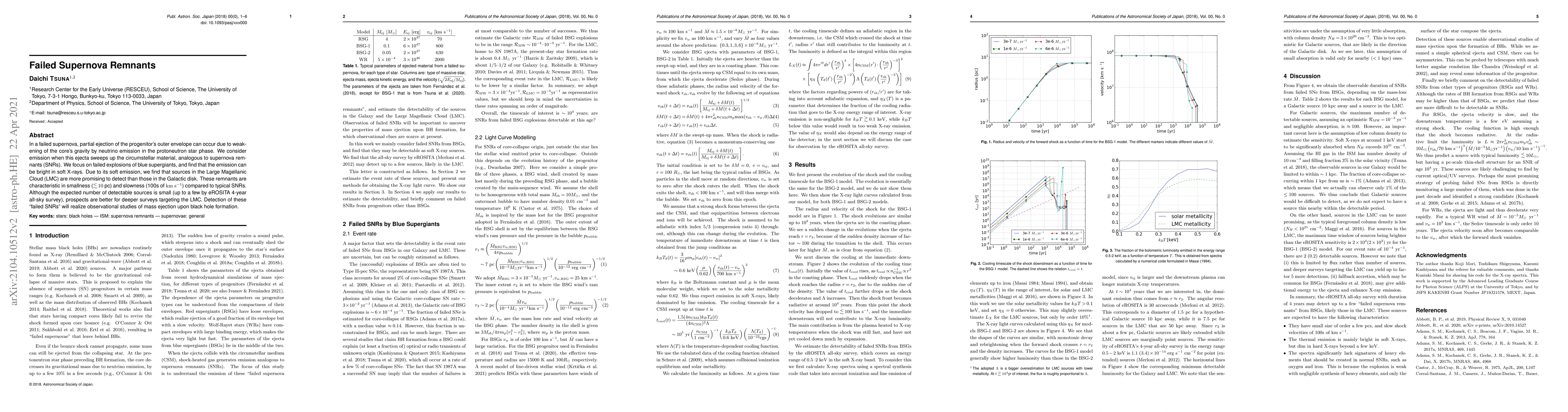 This paper investigates the characteristics of failed supernova remnants formed when partial ejection of a progenitor's outer envelope occurs due to weakened core gravity. These remnants, detectable in soft X-rays, are smaller and slower than typical supernova remnants, with better detection prospects in the Large Magellanic Cloud.