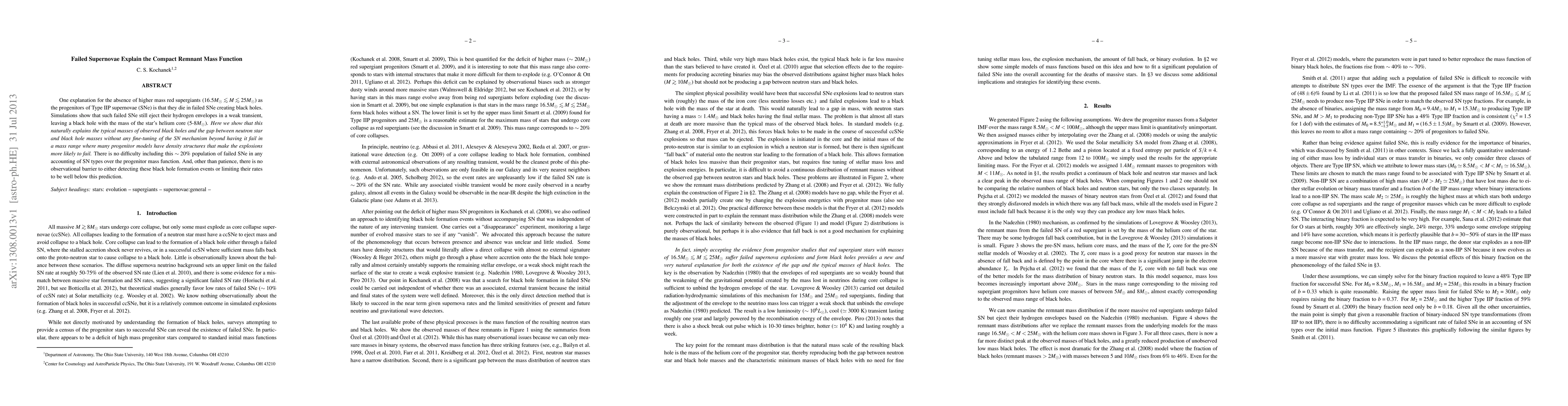 Simulations show that failed supernovae create black holes with masses between 5-8Msun, explaining the compact remnant mass function and no need for fine-tuning of the SN mechanism.