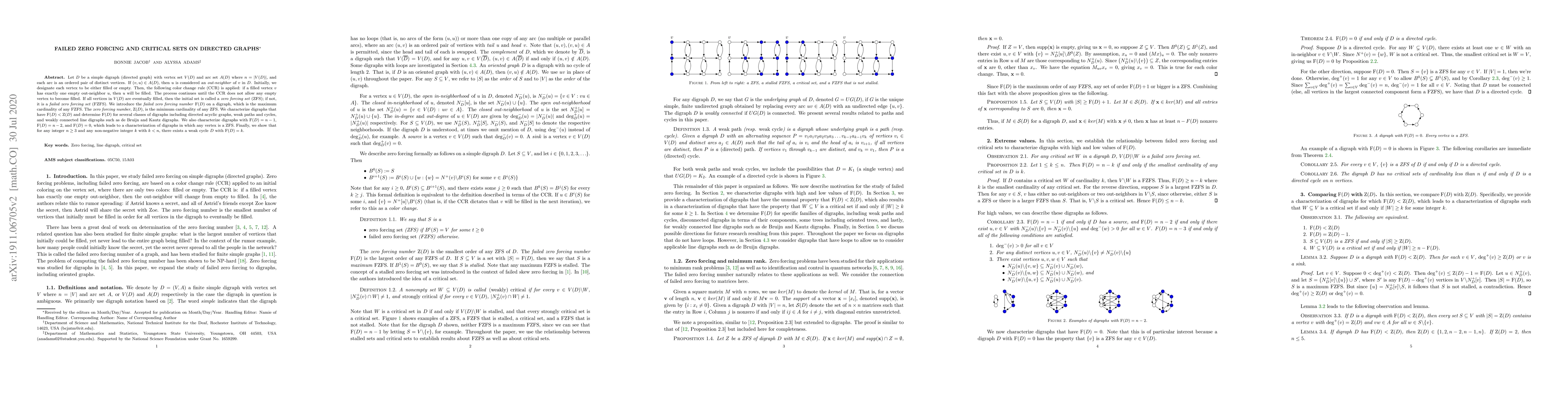 (FZFS). We introduce the \emph{failed zero forcing number} $F(D)$ on a digraph,