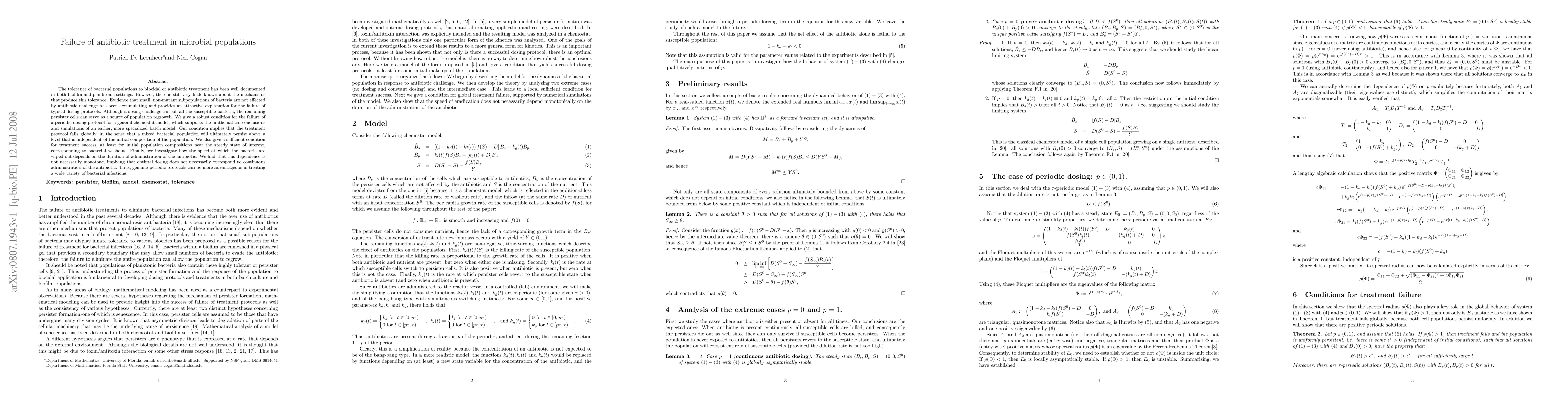 This paper explores the mechanisms behind bacterial tolerance to antibiotic treatment, identifying persister cells as a key factor in treatment failure. It presents a mathematical model showing that periodic dosing protocols can be more effective than continuous administration, challenging conventional dosing strategies.