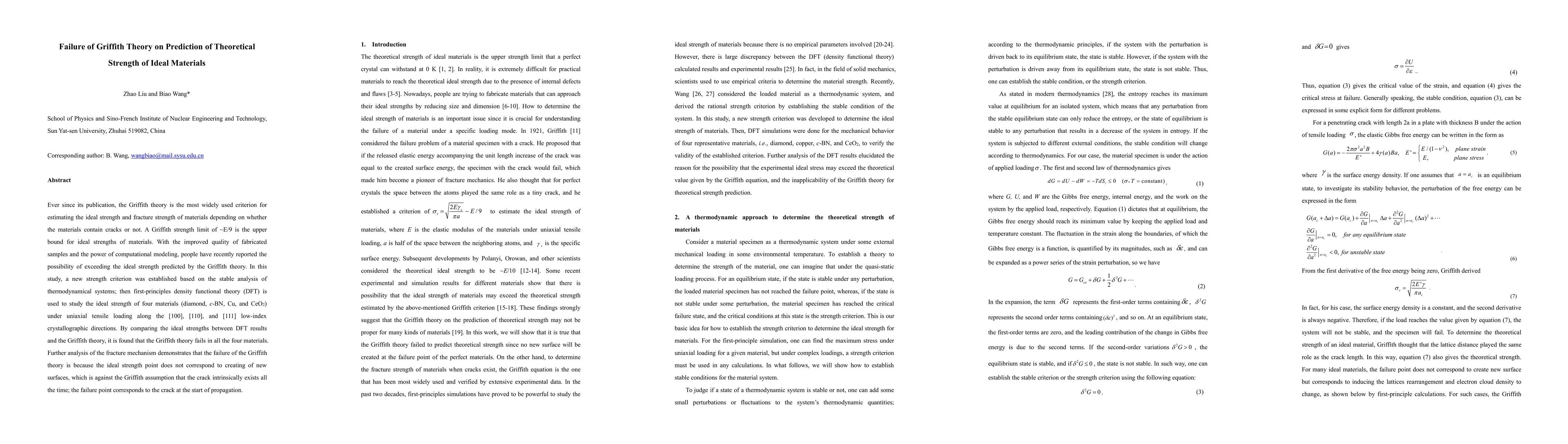Researchers found that Griffith theory fails to predict the strength of ideal materials in four tested materials (diamond, c-BN, Cu, and CeO2), leading to new insights into fracture mechanisms.