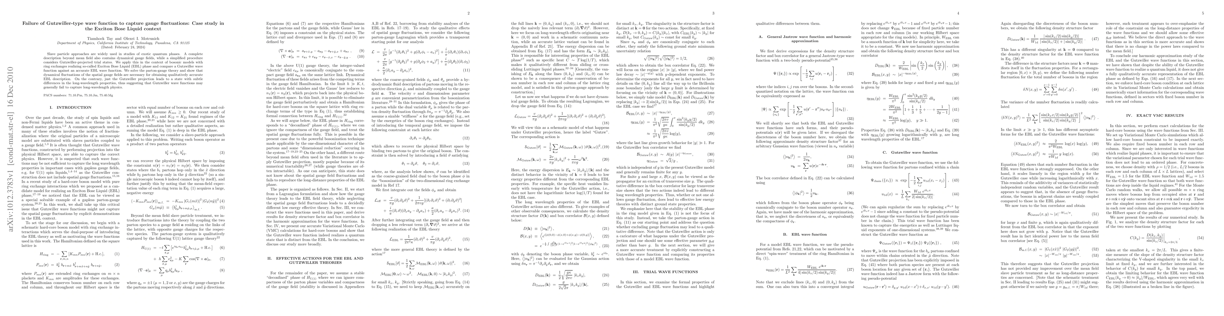 This study investigates the limitations of Gutzwiller-projected wave functions in describing the Exciton Bose Liquid (EBL) phase, revealing that dynamical gauge field fluctuations are crucial for accurate representation, while Gutzwiller projections alone fail to capture long-wavelength properties.