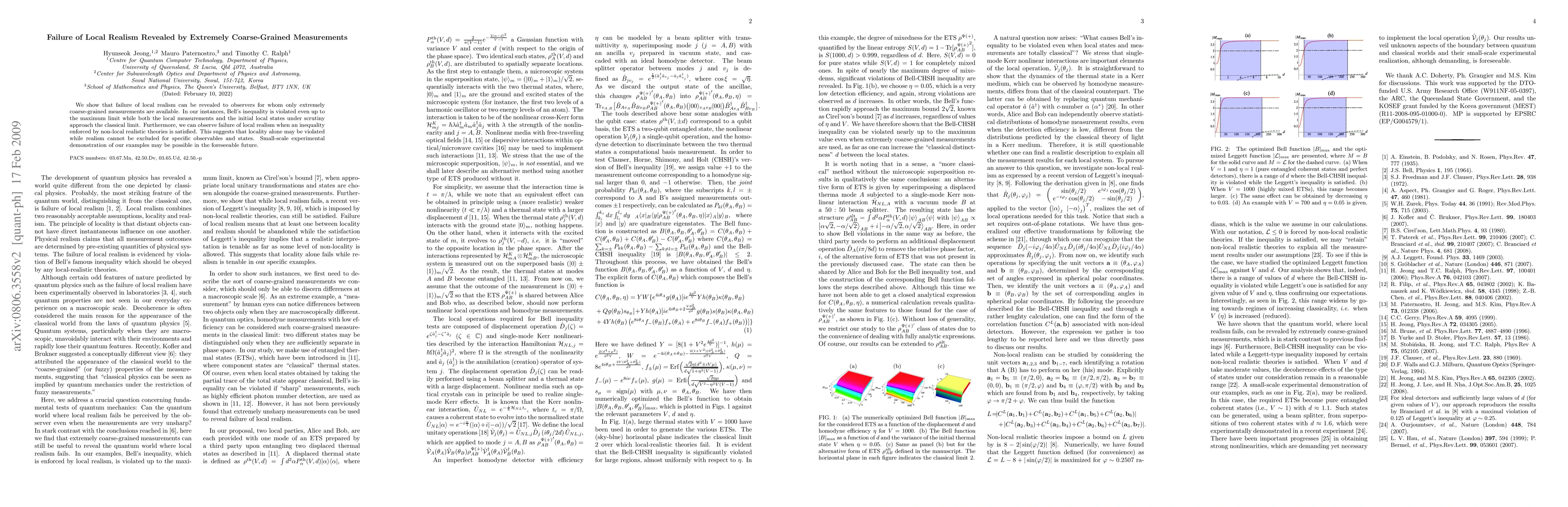 This paper demonstrates that local realism can fail even with extremely coarse-grained measurements, violating Bell's inequality to its maximum extent. It suggests that locality may be violated while realism remains intact for specific observables and states, hinting at potential future small-scale experimental verifications.