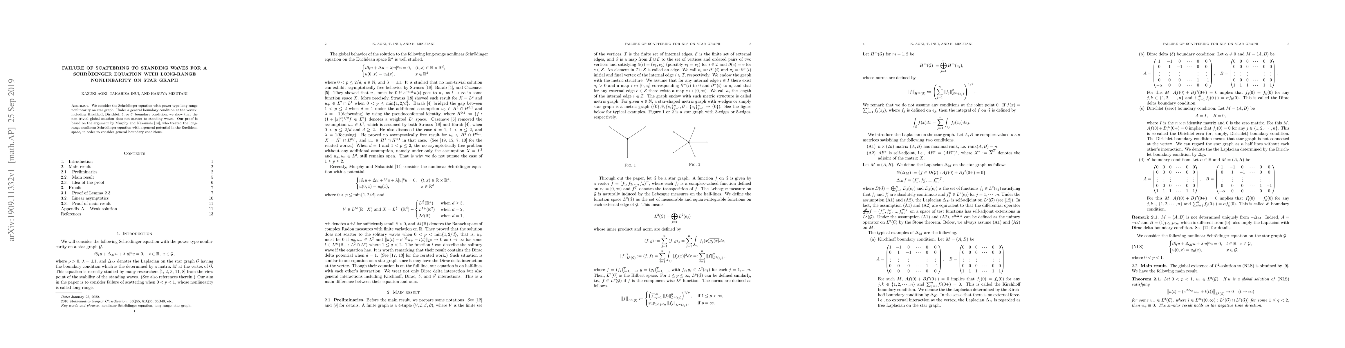 This paper investigates the Schrödinger equation with long-range nonlinearity on a star graph, demonstrating that non-trivial global solutions do not scatter to standing waves under various boundary conditions. The proof adapts techniques from Murphy and Nakanishi for the Euclidean space to accommodate these boundary conditions.