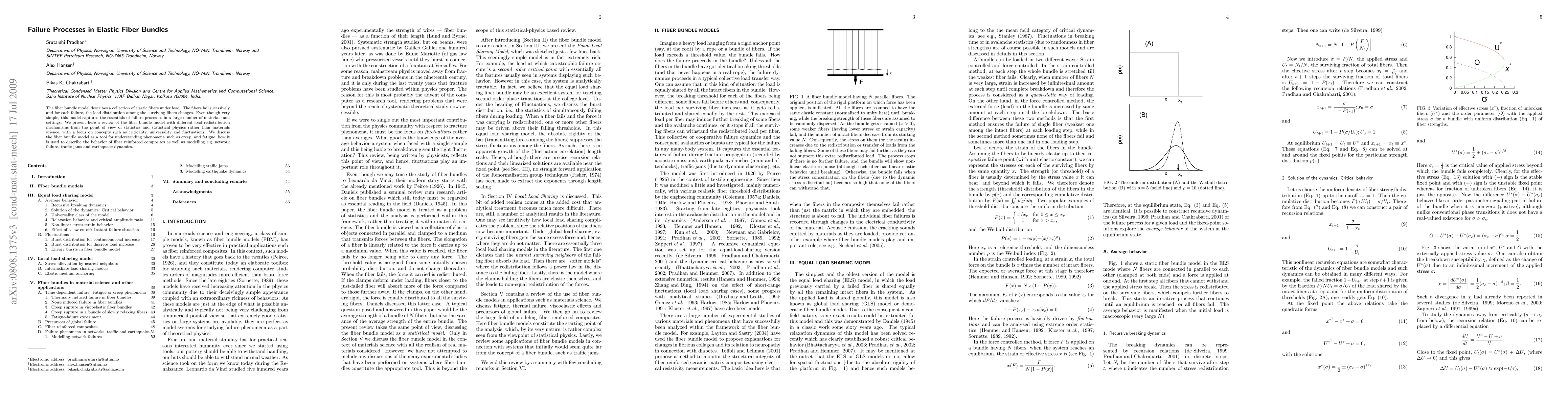 This paper reviews the fiber bundle model, which simulates elastic fibers under load, focusing on statistical and physical aspects of failure processes, including criticality, universality, and fluctuations. It highlights the model's utility in understanding phenomena like creep, fatigue, and composite behavior, as well as broader applications in network failure, traffic jams, and earthquake dynamics.