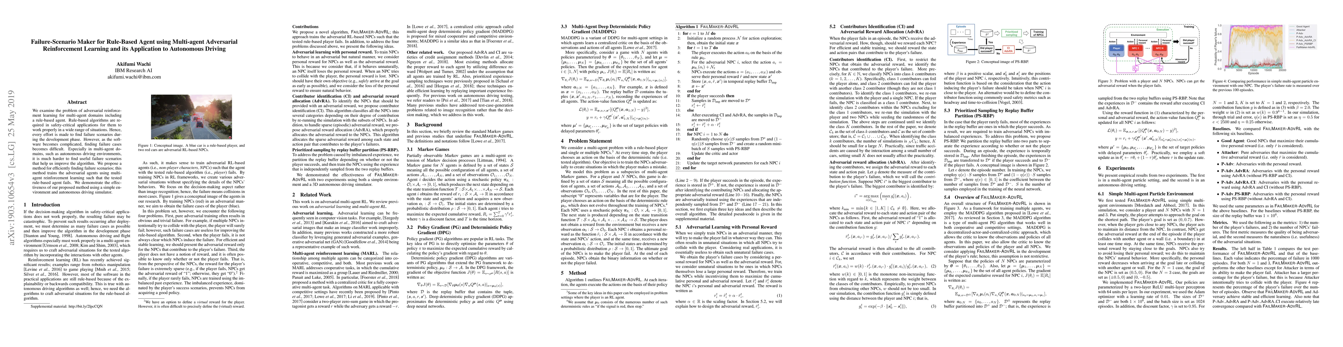 This paper proposes a method for identifying failure scenarios in rule-based agents through multi-agent adversarial reinforcement learning, focusing on complex environments like autonomous driving. The approach trains adversarial agents to expose weaknesses in the rule-based agent, demonstrating its effectiveness in both simple environments and a driving simulator.
