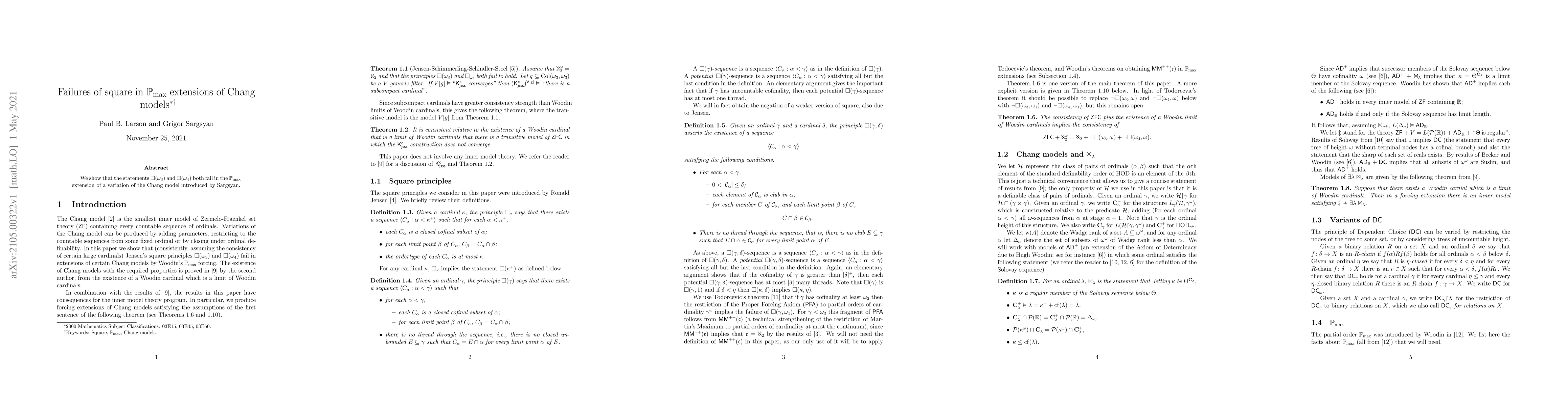 We show that the statements $\square(\omega_{3})$ and $\square(\omega_{4})$ both fail in the $\mathbb{P}_{\mathrm{max}}$ extension of a variation of the Chang model introduced by Sargsyan.