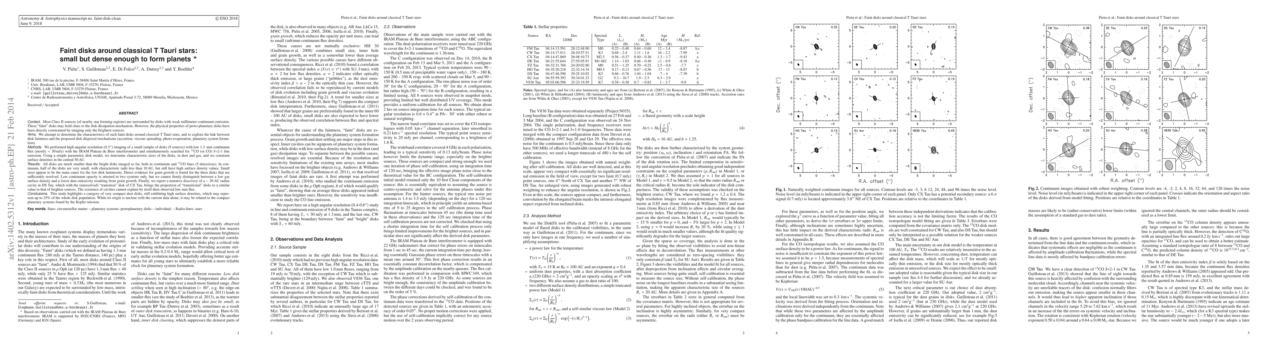 (abridged) Most Class II sources (of nearby star forming regions) are surrounded by disks with weak millimeter continuum emission. These "faint" disks may hold clues to the disk dissipation mechanism. We attempt to determine the characteristics of such faint disks around classical T Tauri stars, and to explore the link between disk faintness and the proposed disk dispersal mechanisms (accretion, viscous spreading, photo-evaporation, planetary system formation). We performed high-angular resolution (0.3") imaging of a small sample of disks (9 sources) with low 1.3mm continuum flux (mostly <30 mJy) with the IRAM Plateau de Bure interferometer and simultaneously searched for 13CO (or CO) J=2-1 line emission. Using a simple parametric disk model, we determine characteristic sizes of the disks, in dust and gas, and we constrain surface densities in the central 50 AU. All disks are much smaller than the bright disks imaged so far, both in continuum and 13CO lines (5 detections). In continuum, half of the disks are very small, with characteristic radii less than 10AU, but still have high surface density values. Small sizes appear to be the main cause for the low disk luminosity. Direct evidence for grain growth is found for the three disks that are sufficiently resolved. Low continuum opacity is attested in two systems only, but we cannot firmly distinguish between a low gas surface density and a lower dust emissivity resulting from grain growth. We report a tentative discovery of a 20 AU radius cavity in DS Tau, bringing the proportion of transitional disks to a similar value to that of brighter sources, but cavities cannot explain the low mm flux. This study highlights a category of very compact dust disks, still exhibiting high surface densities, which may represent up to 25 % of the whole disk population, but its origin is unclear with the current data alone.