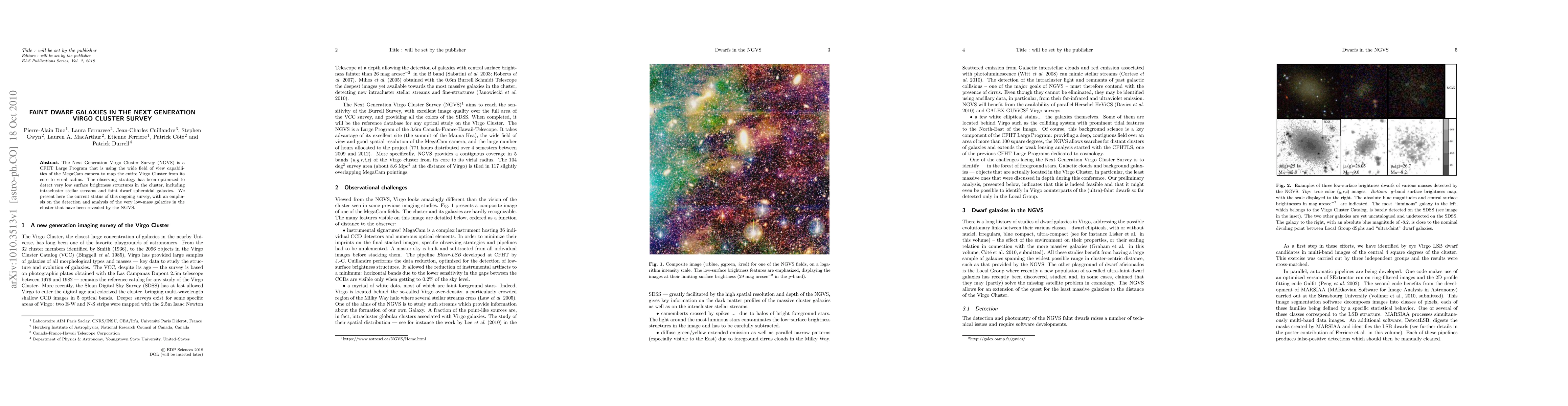 The Next Generation Virgo Cluster Survey (NGVS) aims to map the Virgo Cluster using the MegaCam camera to detect low surface brightness structures, including faint dwarf galaxies. This summary highlights the ongoing efforts to identify and analyze very low-mass galaxies uncovered by the survey.