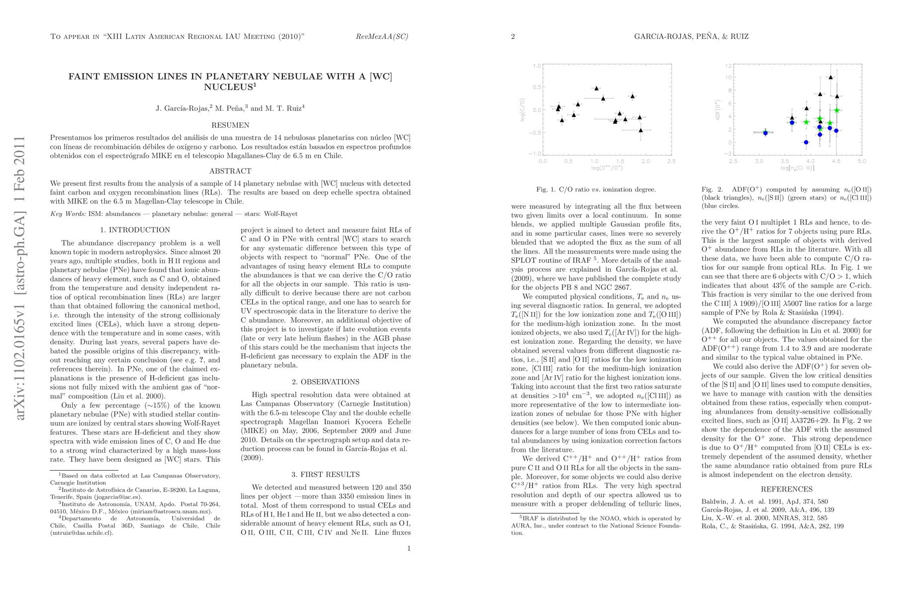 This study analyzes deep echelle spectra from 14 planetary nebulae with [WC] nuclei, revealing faint carbon and oxygen recombination lines, providing new insights into the physical conditions of these nebulae. The observations were conducted using the MIKE spectrograph on the Magellan-Clay telescope in Chile.