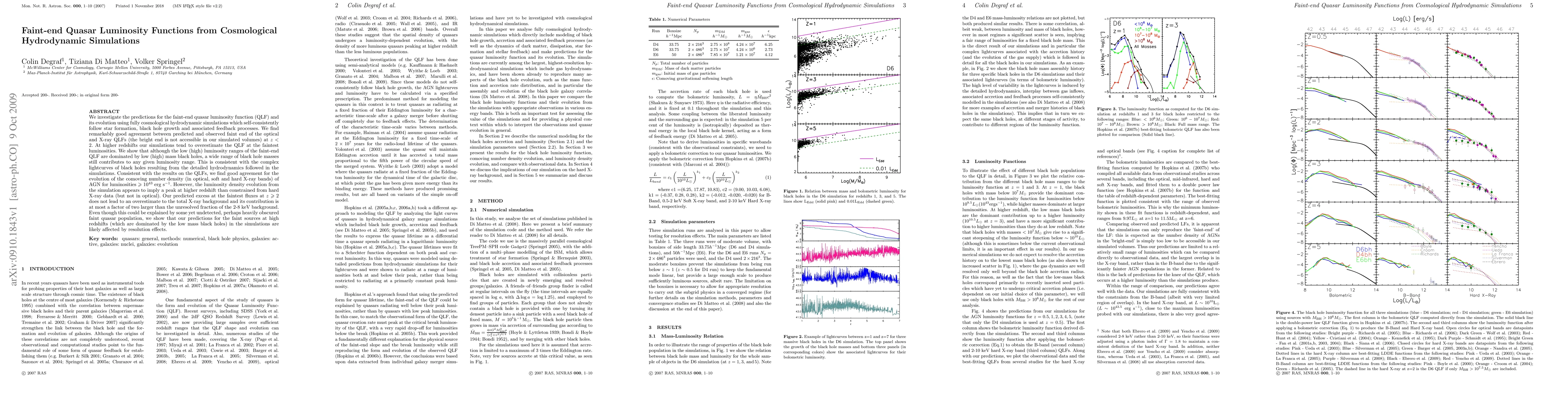 This paper examines the faint-end quasar luminosity function (QLF) from cosmological hydrodynamic simulations, finding good agreement with observations at low redshifts but an overestimation at high redshifts. The simulations show a diverse range of black hole masses contributing to the QLF, consistent with complex lightcurves.