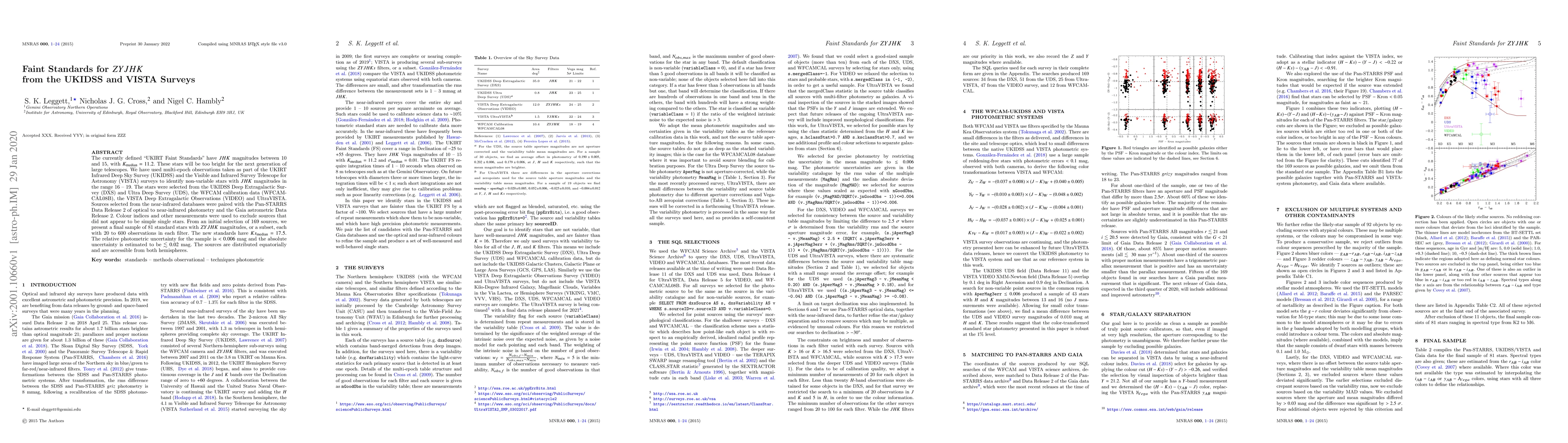 The currently defined "UKIRT Faint Standards" have JHK magnitudes between 10 and 15, with K_median=11.2. These stars will be too bright for the next generation of large telescopes. We have used multi-epoch observations taken as part of the UKIRT Infrared Deep Sky Survey (UKIDSS) and the Visible and Infrared Survey Telescope for Astronomy (VISTA) surveys to identify non-variable stars with JHK magnitudes in the range 16-19. The stars were selected from the UKIDSS Deep Extragalactic Survey (DXS) and Ultra Deep Survey (UDS), the WFCAM calibration data (WFCAMCAL08B), the VISTA Deep Extragalactic Observations (VIDEO) and UltraVISTA. Sources selected from the near-infrared databases were paired with the Pan-STARRS Data Release 2 of optical to near-infrared photometry and the Gaia astrometric Data Release 2. Colour indices and other measurements were used to exclude sources that did not appear to be simple single stars. From an initial selection of 169 sources, we present a final sample of 81 standard stars with ZYJHK magnitudes, or a subset, each with 20 to 600 observations in each filter. The new standards have Ks_median=17.5. The relative photometric uncertainty for the sample is <0.006 mag and the absolute uncertainty is estimated to be <~0.02 mag. The sources are distributed equatorially and are accessible from both hemispheres.