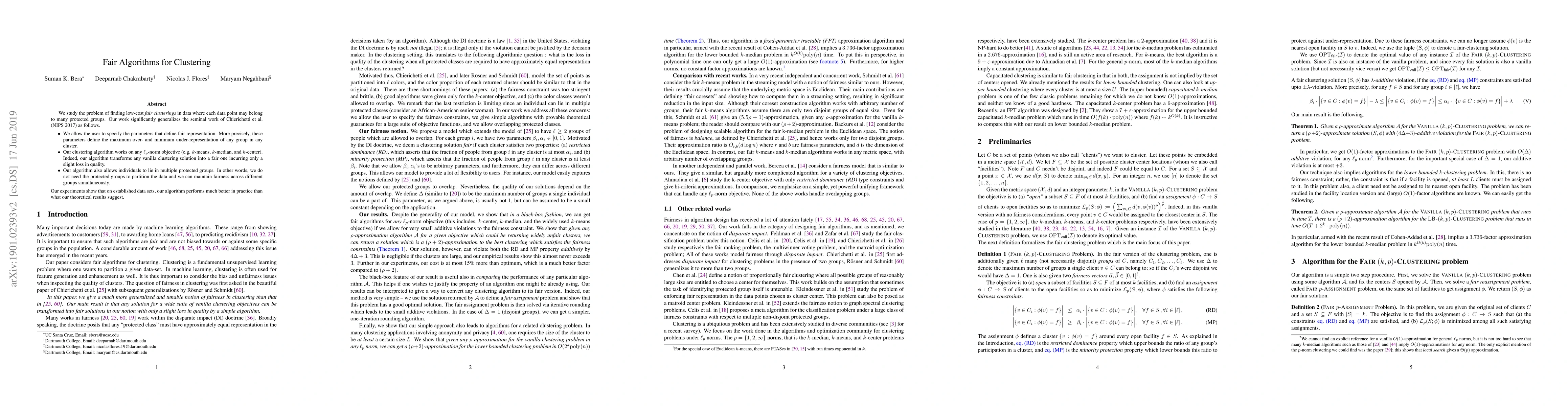 We study the problem of finding low-cost Fair Clusterings in data where each data point may belong to many protected groups. Our work significantly generalizes the seminal work of Chierichetti et.al. (NIPS 2017) as follows. - We allow the user to specify the parameters that define fair representation. More precisely, these parameters define the maximum over- and minimum under-representation of any group in any cluster. - Our clustering algorithm works on any $\ell_p$-norm objective (e.g. $k$-means, $k$-median, and $k$-center). Indeed, our algorithm transforms any vanilla clustering solution into a fair one incurring only a slight loss in quality. - Our algorithm also allows individuals to lie in multiple protected groups. In other words, we do not need the protected groups to partition the data and we can maintain fairness across different groups simultaneously. Our experiments show that on established data sets, our algorithm performs much better in practice than what our theoretical results suggest.