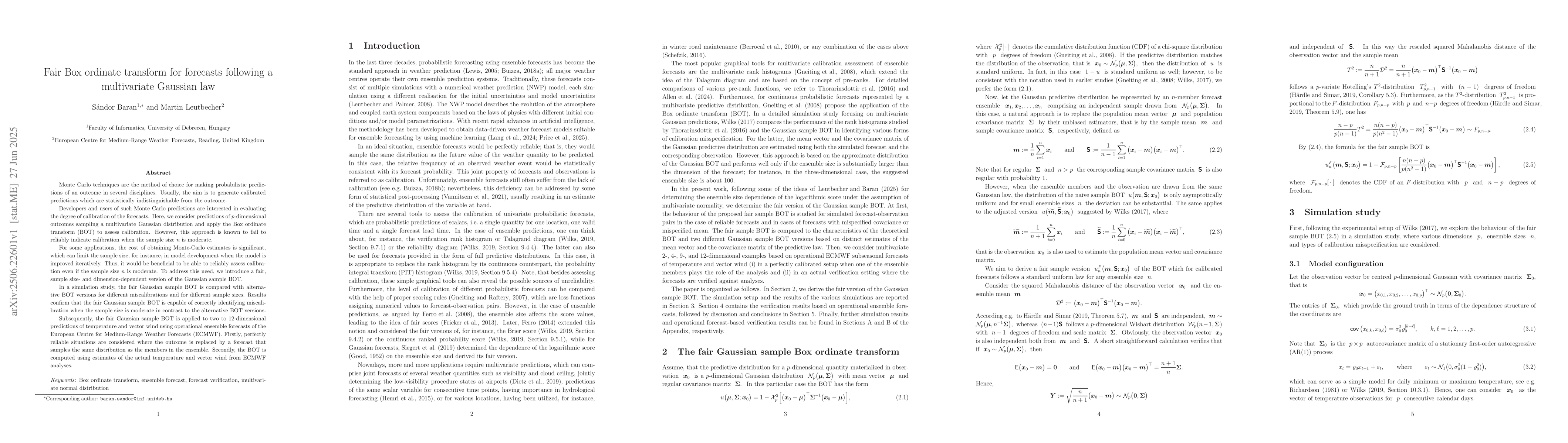Monte Carlo techniques are the method of choice for making probabilistic predictions of an outcome in several disciplines. Usually, the aim is to generate calibrated predictions which are statistically indistinguishable from the outcome. Developers and users of such Monte Carlo predictions are interested in evaluating the degree of calibration of the forecasts. Here, we consider predictions of $p$-dimensional outcomes sampling a multivariate Gaussian distribution and apply the Box ordinate transform (BOT) to assess calibration. However, this approach is known to fail to reliably indicate calibration when the sample size n is moderate. For some applications, the cost of obtaining Monte-Carlo estimates is significant, which can limit the sample size, for instance, in model development when the model is improved iteratively. Thus, it would be beneficial to be able to reliably assess calibration even if the sample size n is moderate. To address this need, we introduce a fair, sample size- and dimension-dependent version of the Gaussian sample BOT. In a simulation study, the fair Gaussian sample BOT is compared with alternative BOT versions for different miscalibrations and for different sample sizes. Results confirm that the fair Gaussian sample BOT is capable of correctly identifying miscalibration when the sample size is moderate in contrast to the alternative BOT versions. Subsequently, the fair Gaussian sample BOT is applied to two to 12-dimensional predictions of temperature and vector wind using operational ensemble forecasts of the European Centre for Medium-Range Weather Forecasts (ECMWF). Firstly, perfectly reliable situations are considered where the outcome is replaced by a forecast that samples the same distribution as the members in the ensemble. Secondly, the BOT is computed using estimates of the actual temperature and vector wind from ECMWF analyses.