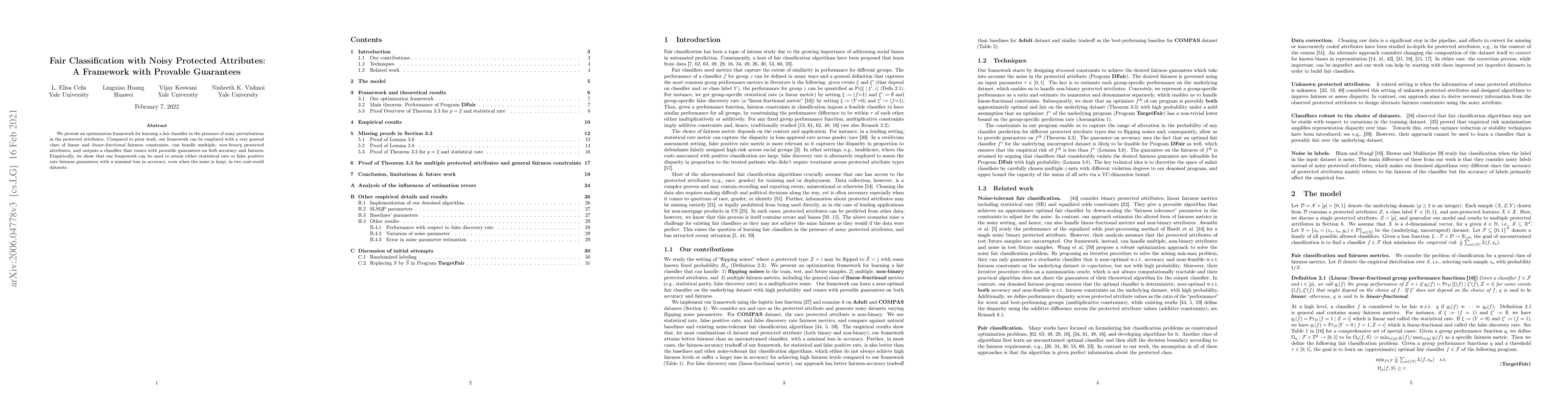 The paper introduces a robust optimization framework with provable guarantees for fair classification under noisy protected attributes, supporting linear and linear-fractional fairness constraints and multiple protected attributes.