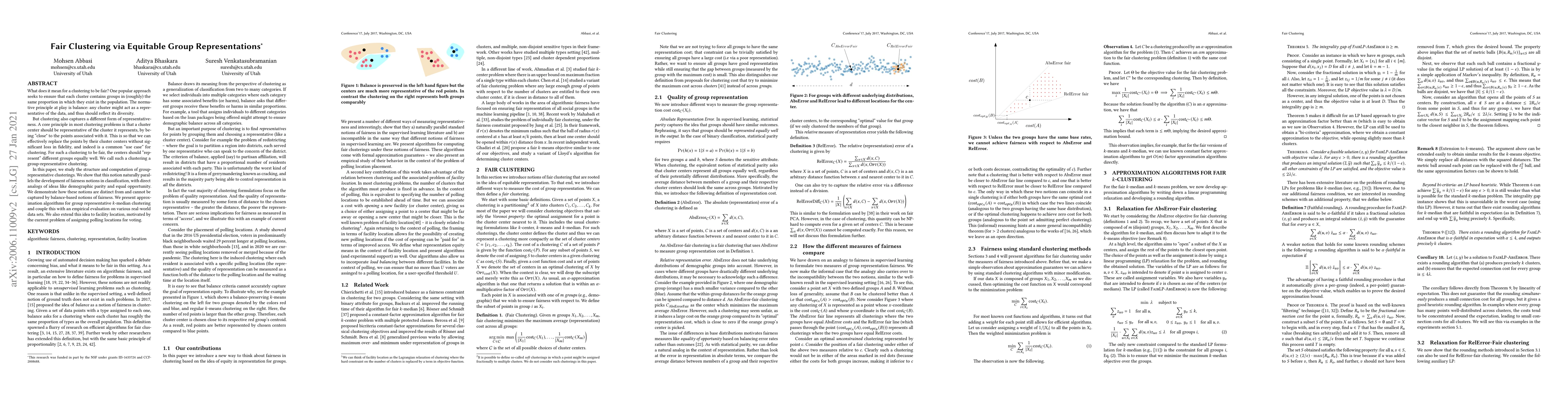 This paper introduces group-representative clustering, a fairness concept that balances representativeness of cluster centers across different groups, distinct from balance-based notions of fairness.