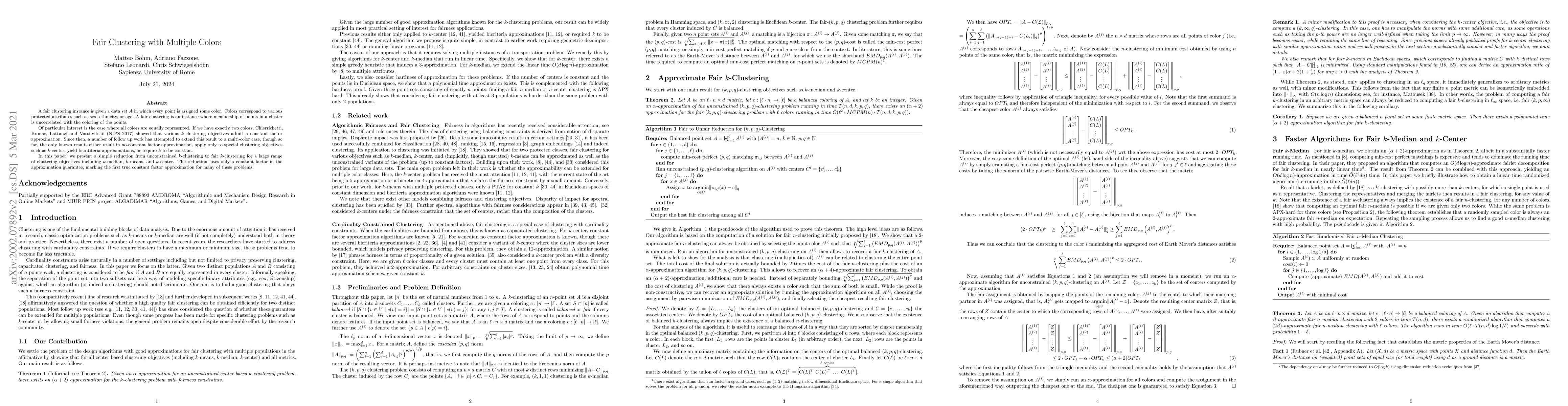 This paper introduces a reduction technique that converts unconstrained $k$-clustering into fair $k$-clustering while maintaining a constant factor approximation guarantee for objectives like $k$-median, $k$-means, and $k$-center, addressing the multi-color fair clustering problem.