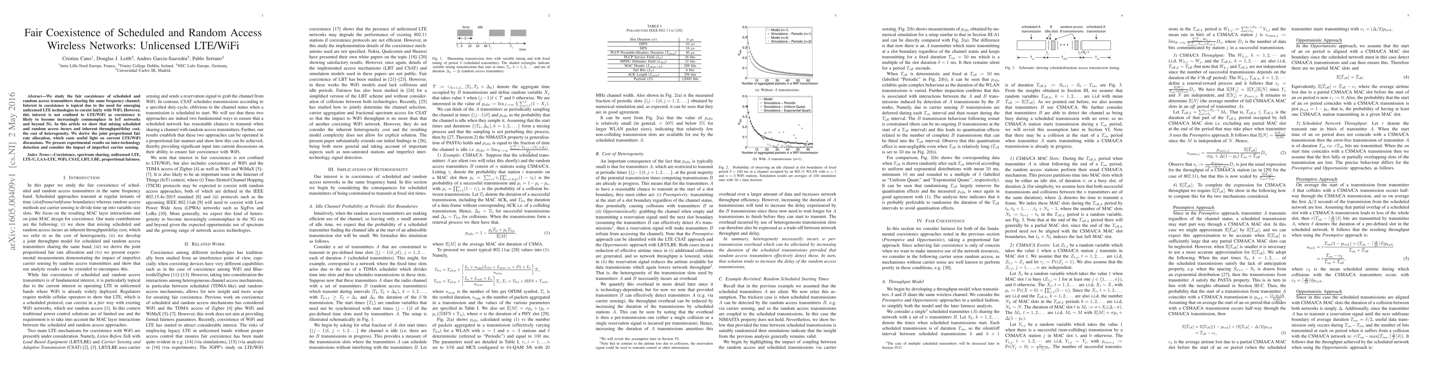 We study the fair coexistence of scheduled and random access transmitters sharing the same frequency channel. Interest in coexistence is topical due to the need for emerging unlicensed LTE technologies to coexist fairly with WiFi. However, this interest is not confined to LTE/WiFi as coexistence is likely to become increasingly commonplace in IoT networks and beyond 5G. In this article we show that mixing scheduled and random access incurs and inherent throughput/delay cost, the cost of heterogeneity. We derive the joint proportional fair rate allocation, which casts useful light on current LTE/WiFi discussions. We present experimental results on inter-technology detection and consider the impact of imperfect carrier sensing.
