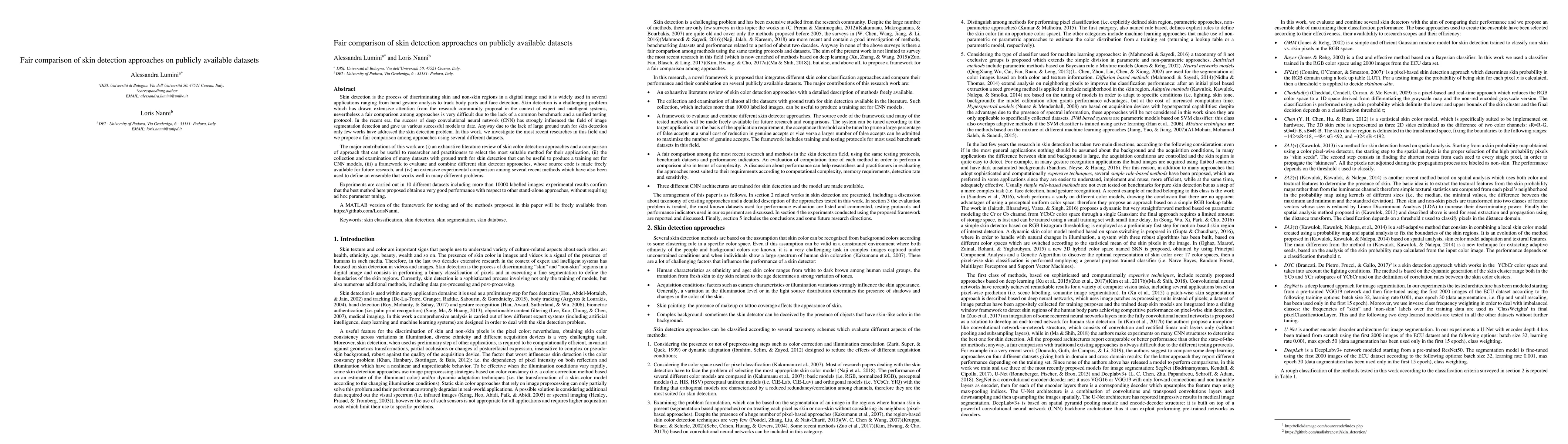 A study compares skin detection approaches on publicly available datasets, proposing a framework for evaluating and combining different methods with excellent performance, available online for future research.