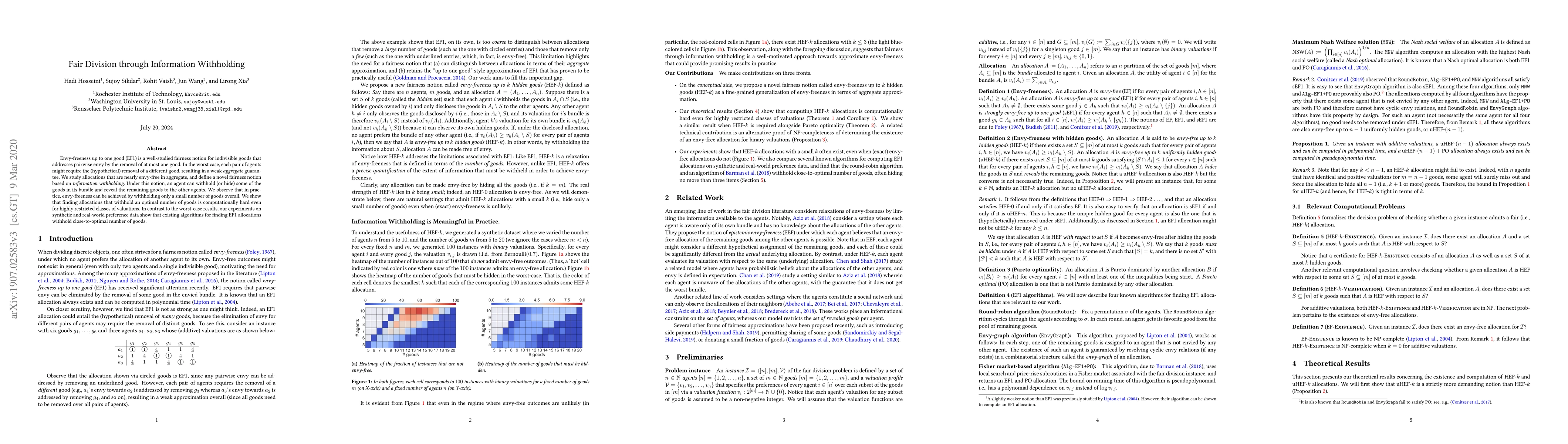 This paper explores a novel fairness notion for allocating indivisible goods called envy-freeness up to one good (EF1) through information withholding. It demonstrates that achieving near-optimal envy-freeness often requires withholding a small number of goods, though finding such allocations is computationally hard. Experiments suggest existing algorithms perform well in practice.