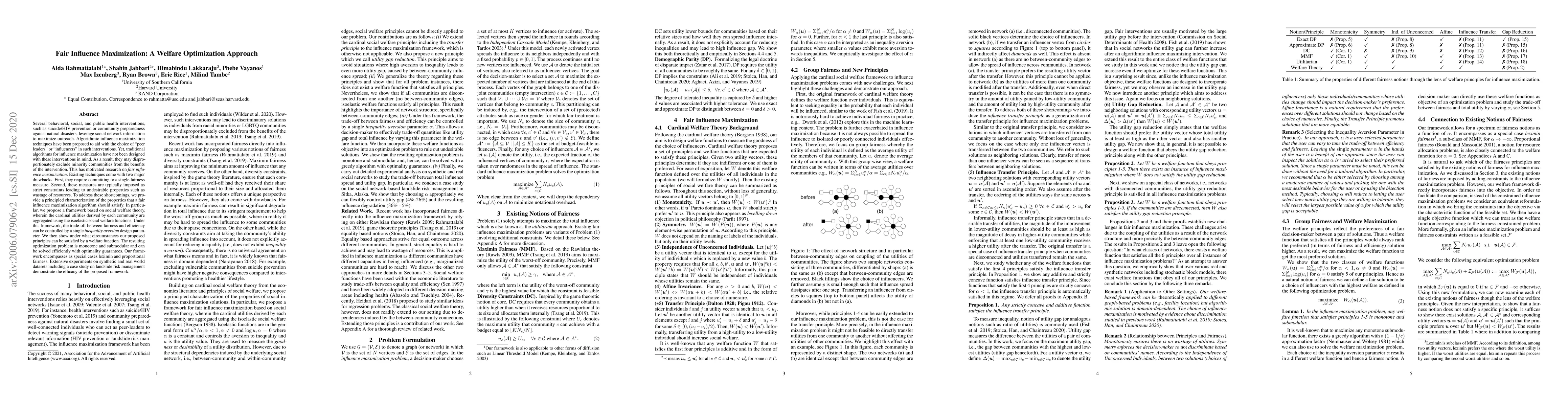 This paper proposes a fair influence maximization framework based on social welfare optimization, addressing the limitations of existing fair influence maximization techniques. It introduces a welfare function with an inequality aversion parameter to balance fairness and efficiency, and demonstrates its effectiveness through experiments on synthetic and real-world datasets.