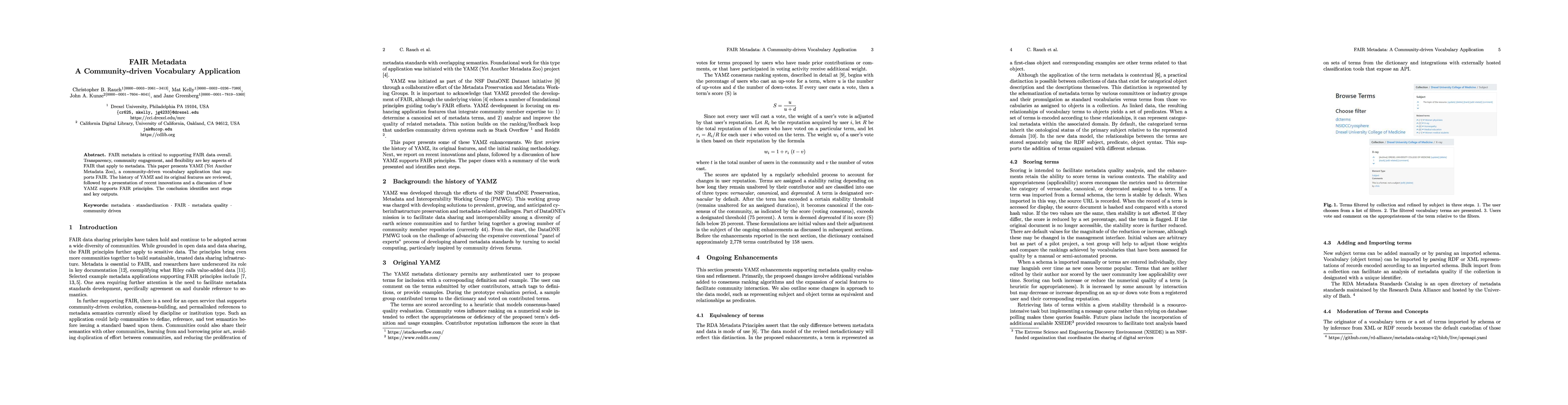 This paper introduces YAMZ, a community-driven vocabulary application supporting FAIR metadata principles, reviewing its history and innovations while discussing its role in promoting transparency, community engagement, and flexibility. The conclusion outlines future directions and key outcomes.