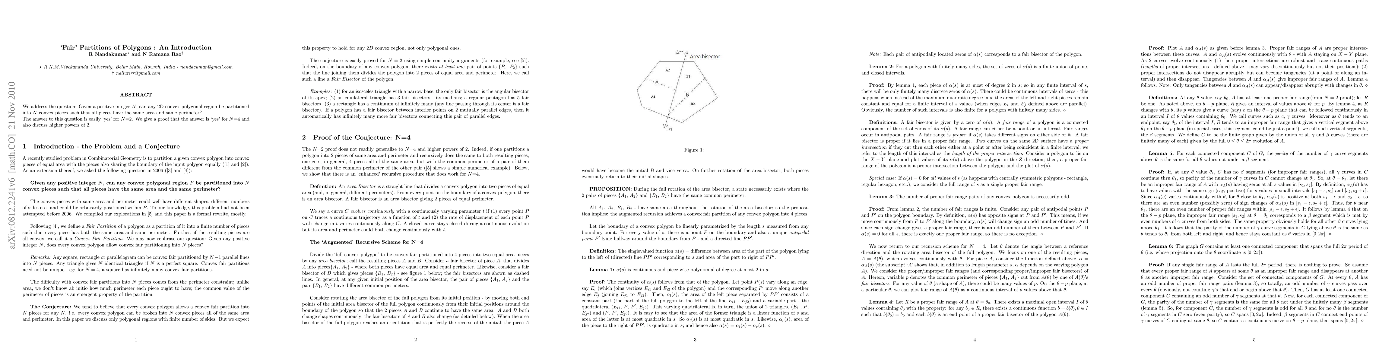 We address the question: Given a positive integer $N$, can any 2D convex polygonal region be partitioned into $N$ convex pieces such that all pieces have the same area and same perimeter? The answer to this question is easily `yes' for $N$=2. We prove the answer to be `yes' for $N$=4 and also discuss higher powers of 2.