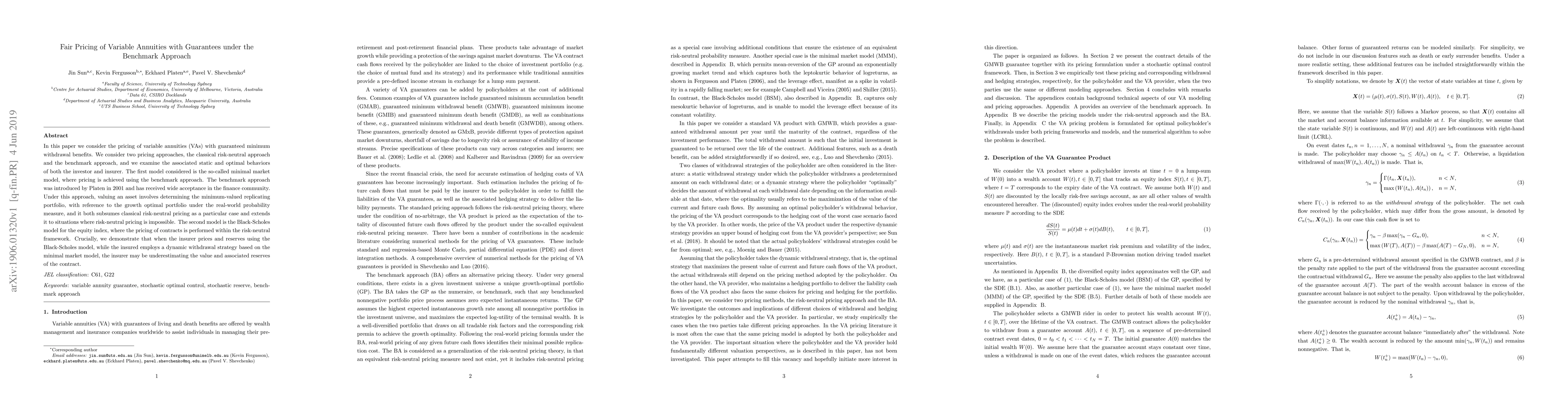 This paper compares the pricing of variable annuities with guaranteed benefits using the benchmark approach and the classical risk-neutral approach, showing that the latter can lead to underestimation of contract value and reserves when used by insurers. The benchmark approach provides a more comprehensive valuation method.