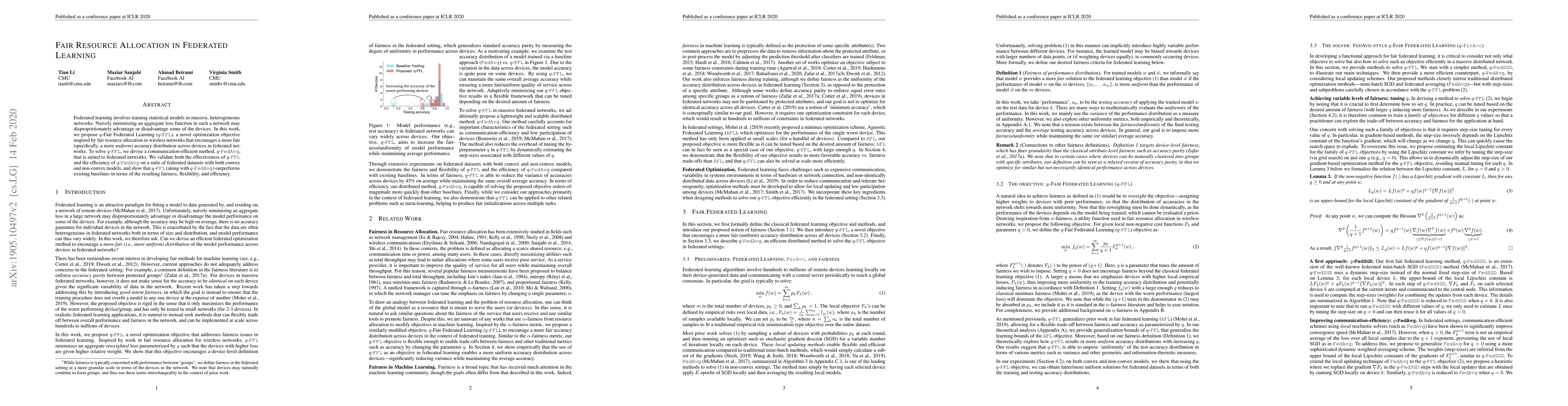 This paper proposes q-Fair Federated Learning (q-FFL) to achieve a more uniform accuracy distribution across devices in federated networks. The authors introduce q-FedAvg, a communication-efficient method to solve q-FFL, and demonstrate its effectiveness and efficiency on various federated datasets.