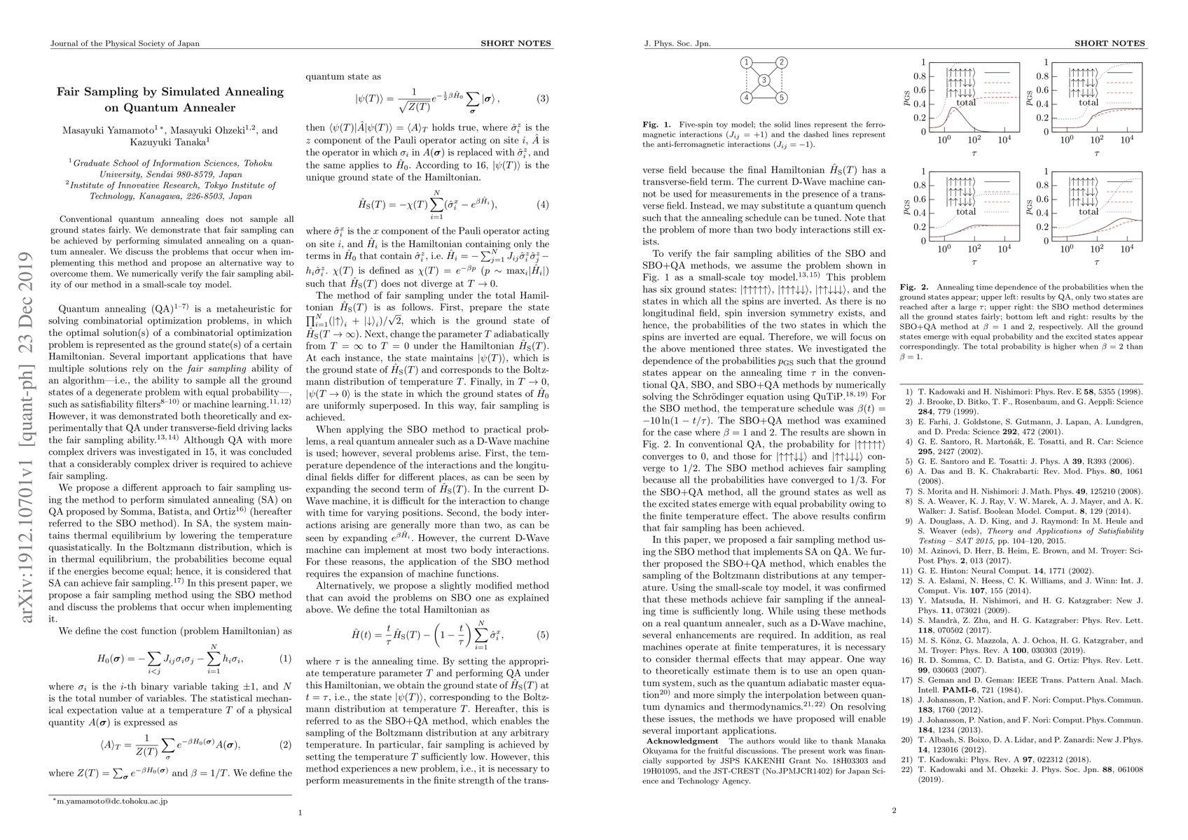 This paper proposes a method for achieving fair sampling of ground states using simulated annealing on a quantum annealer, addressing the limitations of conventional quantum annealing. The authors discuss implementation challenges and propose an alternative solution, which is numerically verified in a small-scale model.
