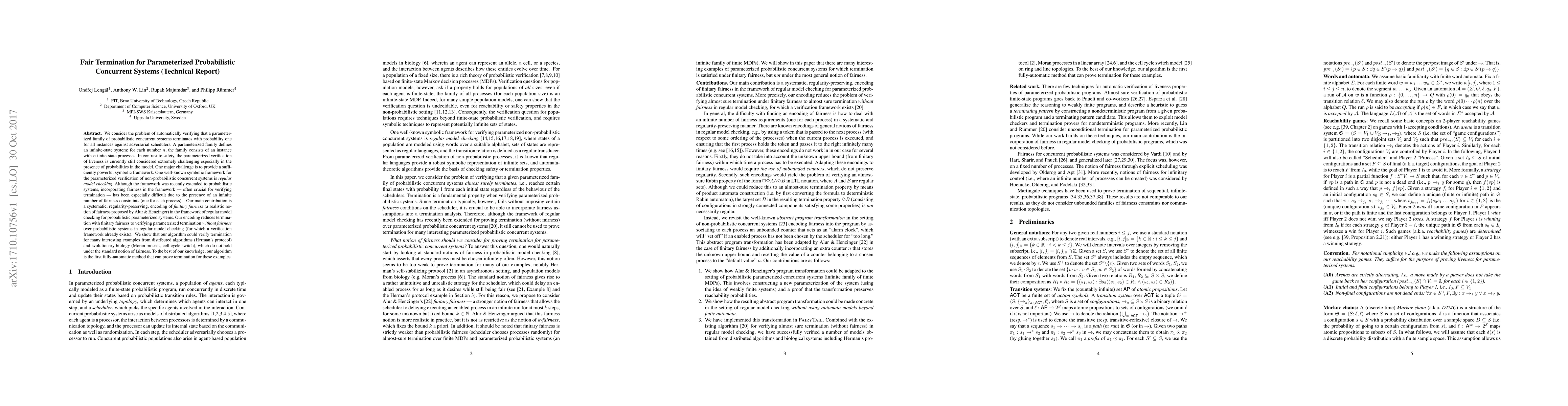 This paper presents a novel encoding method to verify termination with finitary fairness in parameterized probabilistic concurrent systems using regular model checking. The proposed approach simplifies the verification of termination with fairness by reducing it to termination without fairness, thereby enabling the verification of complex systems like Herman's protocol and Moran process.