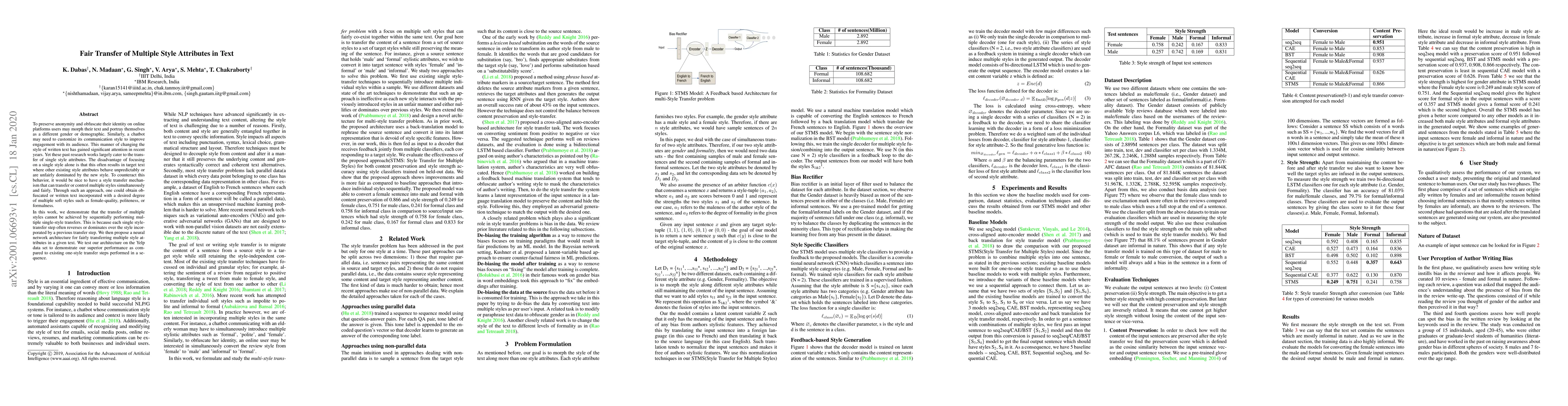 This paper proposes a neural network architecture to fairly transfer multiple style attributes in text, addressing the limitation of existing methods that focus on single-style transfers. The proposed method outperforms sequential single-style transfers by avoiding the issue of style dominance and reversal, as demonstrated on the Yelp dataset.
