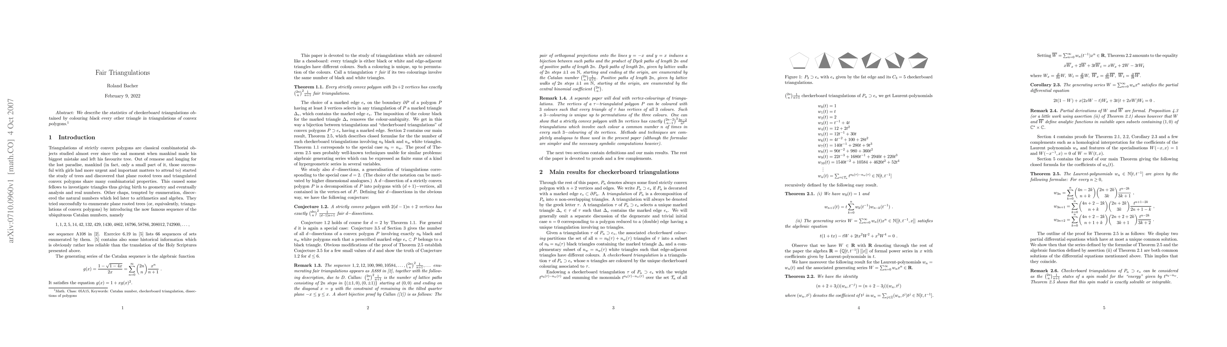 This study investigates checkerboard triangulations of convex polygons, where every other triangle is colored black, and examines the statistical properties of these configurations. The research focuses on the patterns and distributions arising from this coloring method.
