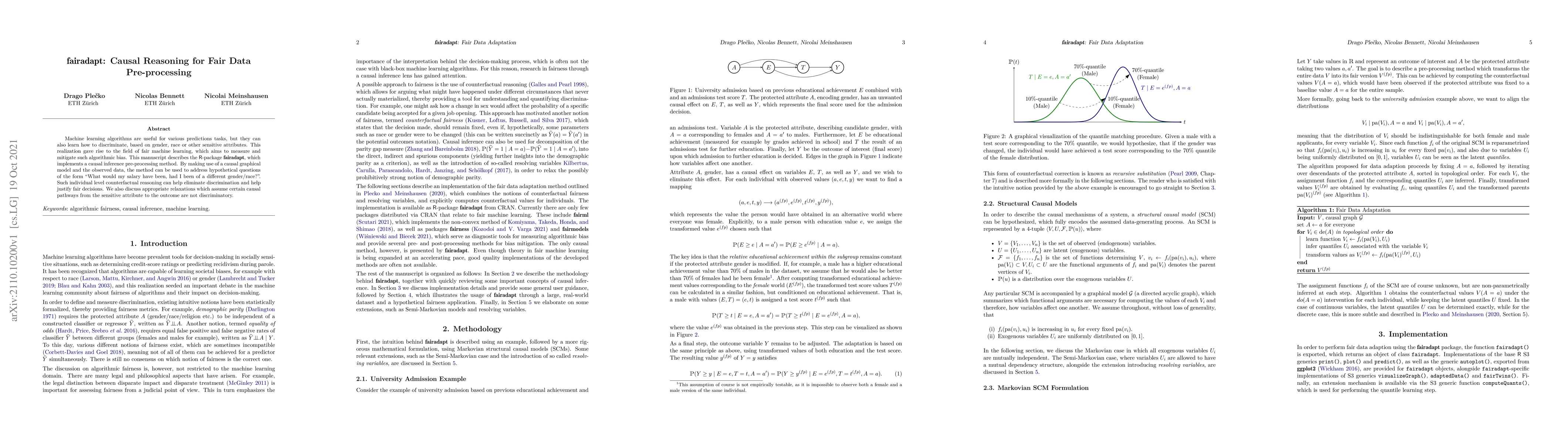 The fairadapt R-package uses causal graphical models to analyze bias in machine learning algorithms and provide individual-level counterfactual reasoning for fairness, allowing for more just decisions.