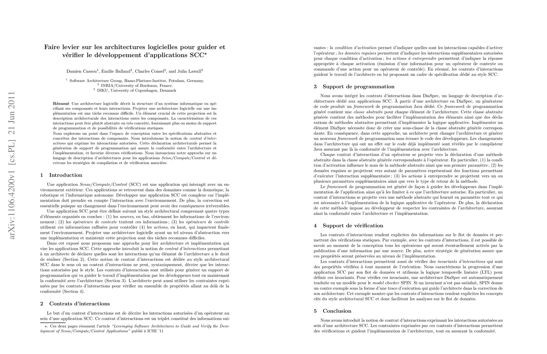 A software architecture describes the structure of a computing system by specifying software components and their interactions. Mapping a software architecture to an implementation is a well known challenge. A key element of this mapping is the architecture's description of the data and control-flow interactions between components. The characterization of these interactions can be rather abstract or very concrete, providing more or less implementation guidance, programming support, and static verification. In this paper, we explore one point in the design space between abstract and concrete component interaction specifications. We introduce a notion of interaction contract that expresses allowed interactions between components, describing both data and control-flow constraints. This declaration is part of the architecture description, allows generation of extensive programming support, and enables various verifications. We instantiate our approach in an architecture description language for Sense/Compute/Control applications, and describe associated compilation and verification strategies.