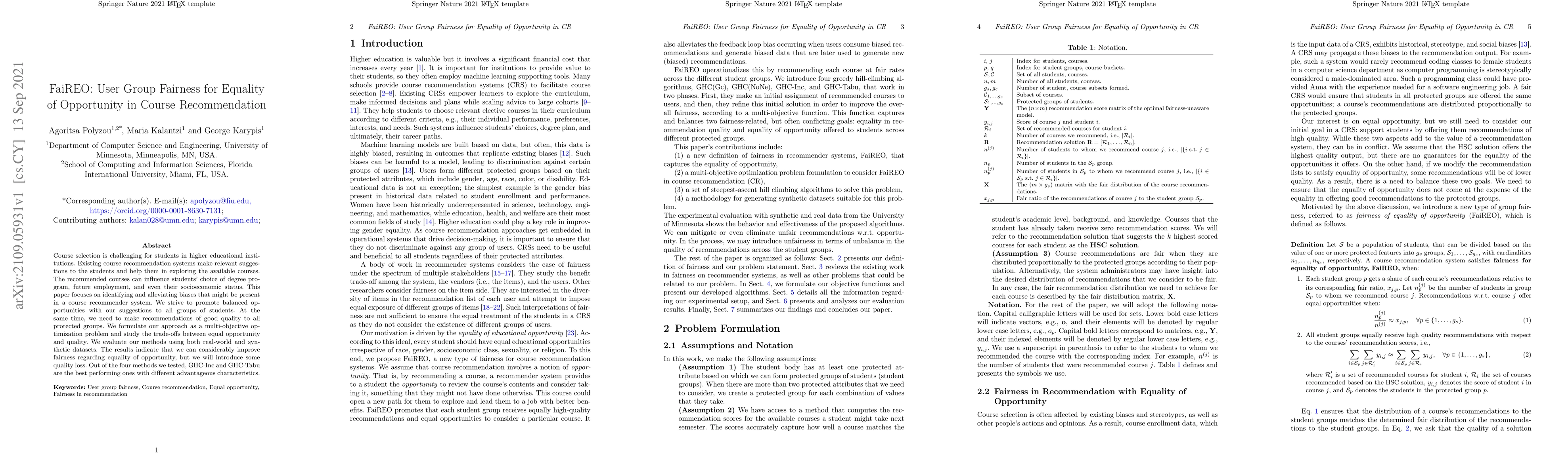 This paper introduces FaiREO, a method to identify and mitigate biases in course recommendation systems to promote fairness in equality of opportunity for all student groups. The authors propose a multi-objective optimization approach to balance fairness with recommendation quality, finding that GHC-Inc and GHC-Tabu methods offer the best trade-offs.
